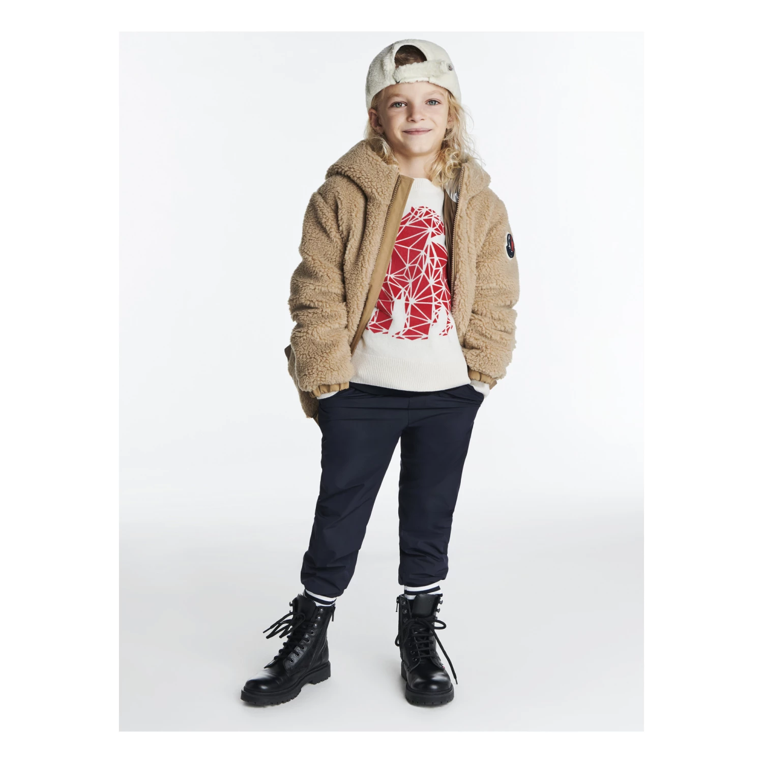 - Decorative cut-out, Contrasting logo, Dual-material, Zipped pocket(s), Adjustable cuffs, Hood, Warm and comfortable