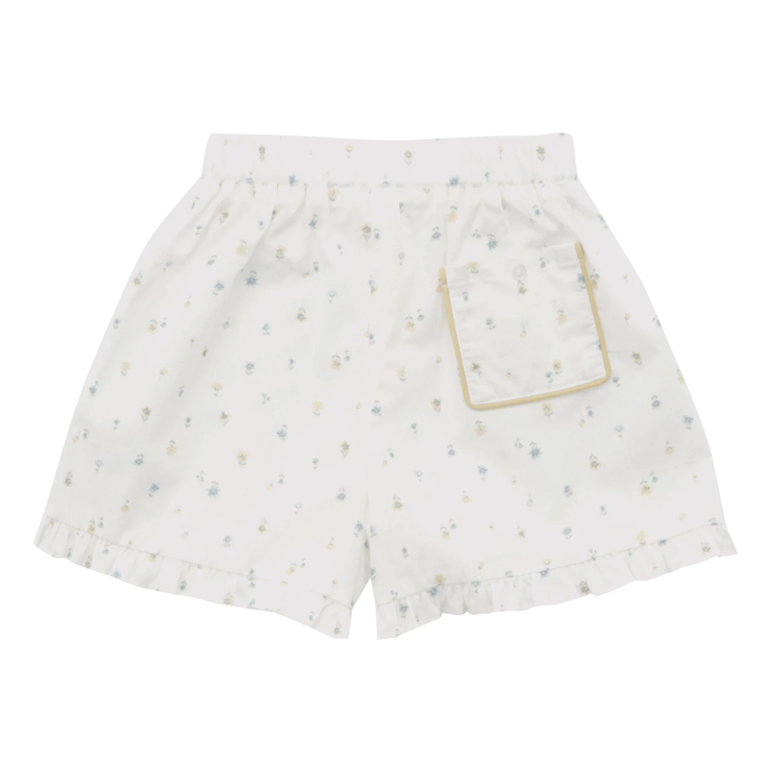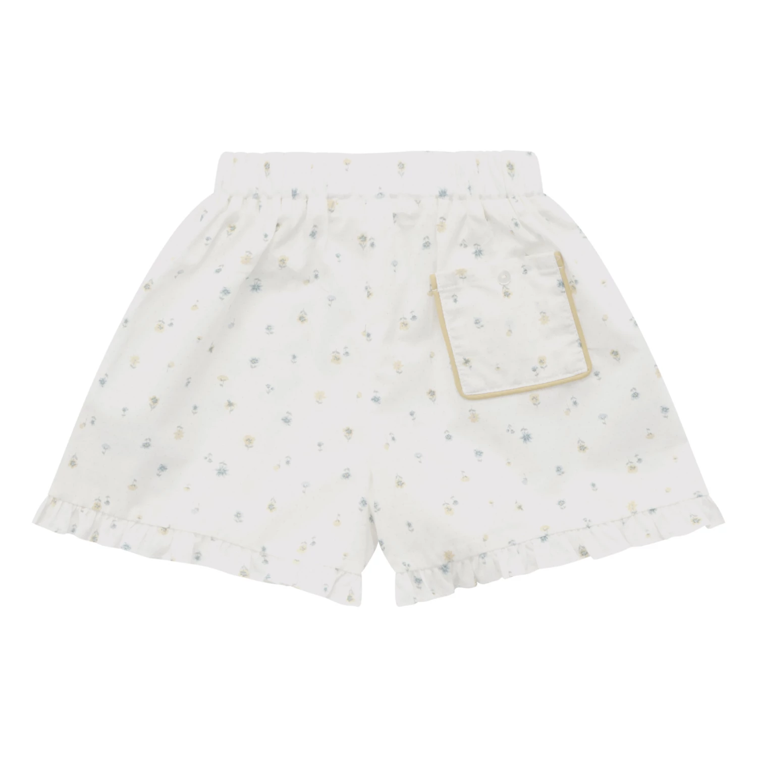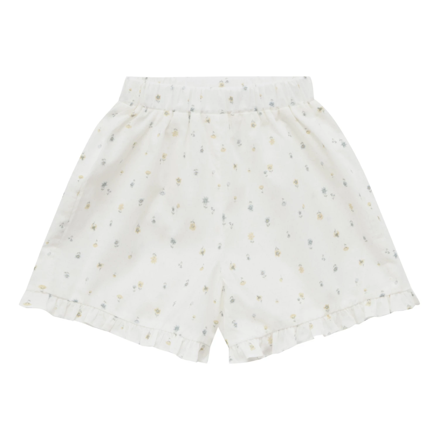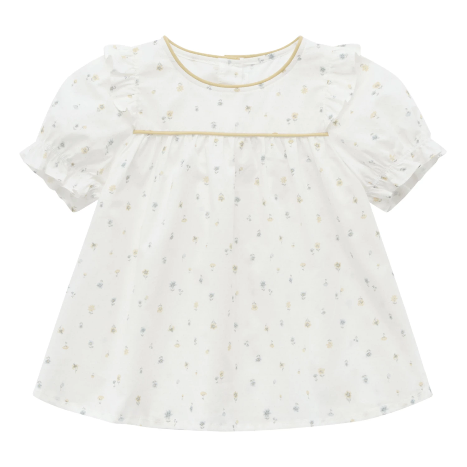 - Flounce sleeve, Crew neck, Balloon sleeves, Short sleeves, Frilled edges, Elasticated waist, Pleated
