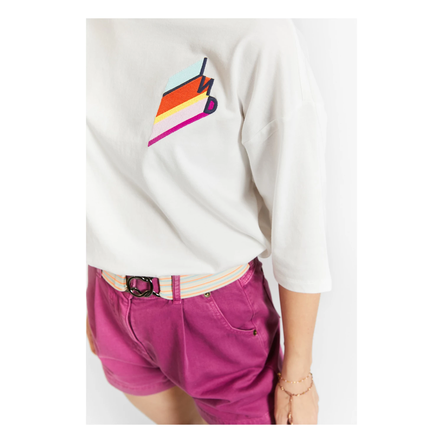 - Low armholes, Crew neck, Top stitched, Embroidered logo, 3/4 sleeves, Comfortable