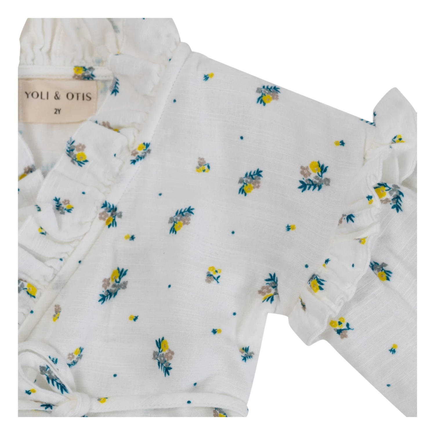 - Tie fastening, Removable belt, Flower print