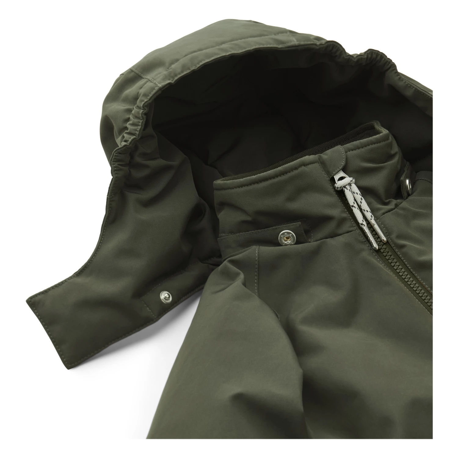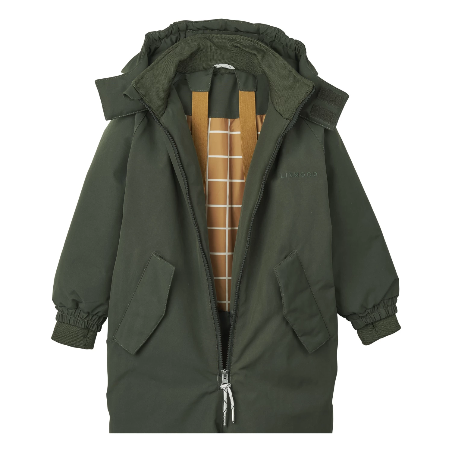- Elastic at ankles, Elastic at back, Long sleeves, Flap pocket(s), Elastic cuffs, Strap(s), Adjustable straps, Elastic straps, Removable hood, Warm and comfortable, Turtleneck