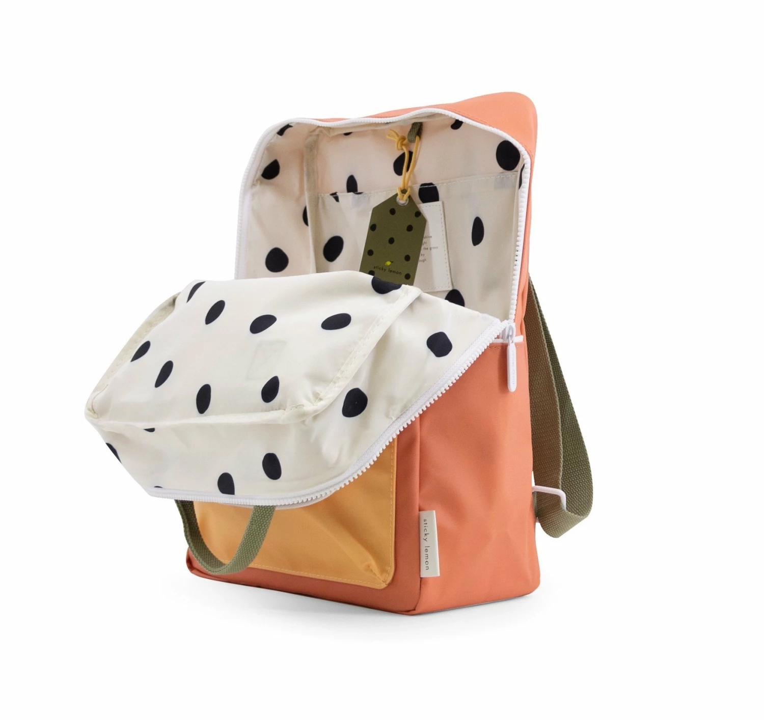 - Details : Three colour, Adjustable Straps, 1 principal compartment, Velcro interior pocket, Popper front pocket, Double zip, Handles, Creativity printed lining