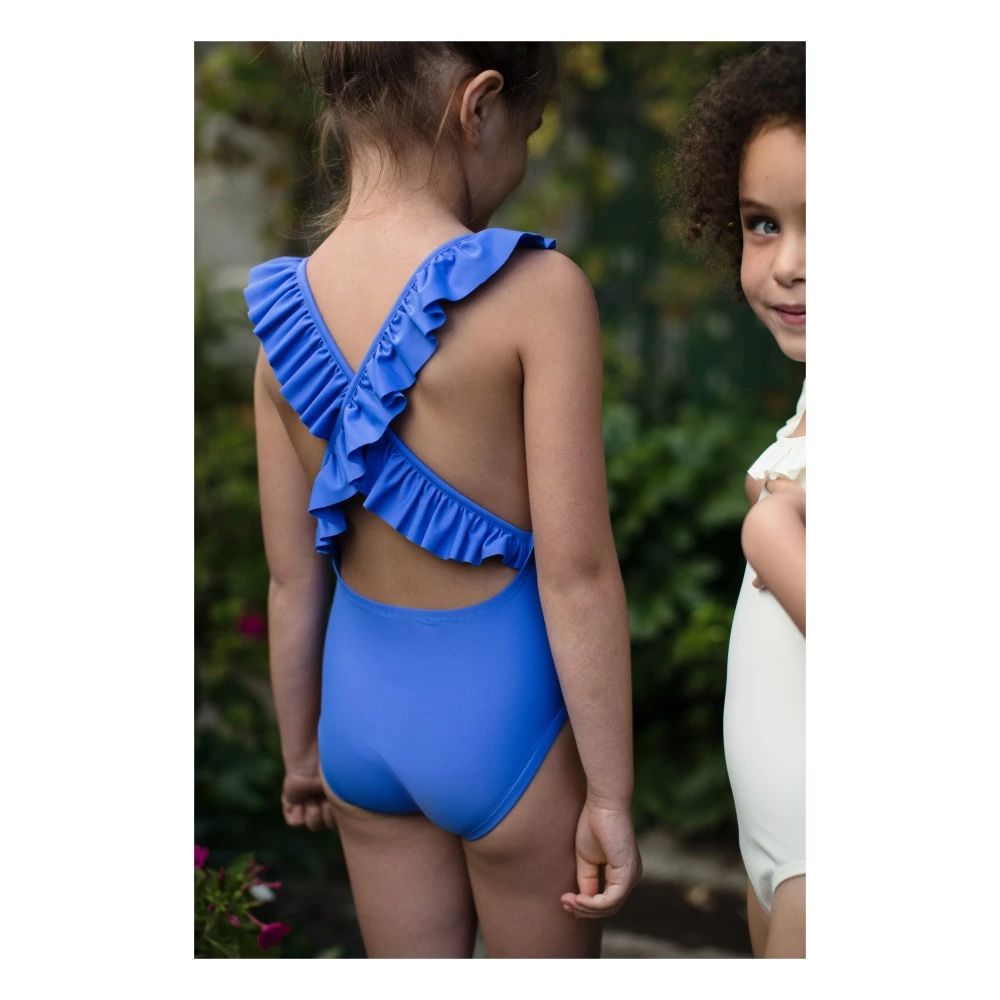 - Details : Round neckline, Cross back straps, Closure: Slip-on, Ruffled, Open back, Filters 98% UVA an UVB rays without chemical treatment, Children’s UV-resistant swimwear is made from Econyl®, a recycled fiber. Laboratory tested against the effects of chlorine, seawater and sunscreen, our swimsuits offer UPF 50+ protection without chemical filters, thanks to a very tight mesh, in compliance with the Australian standard, the international reference in terms of sun protection., Soft touch, Dries very quickly