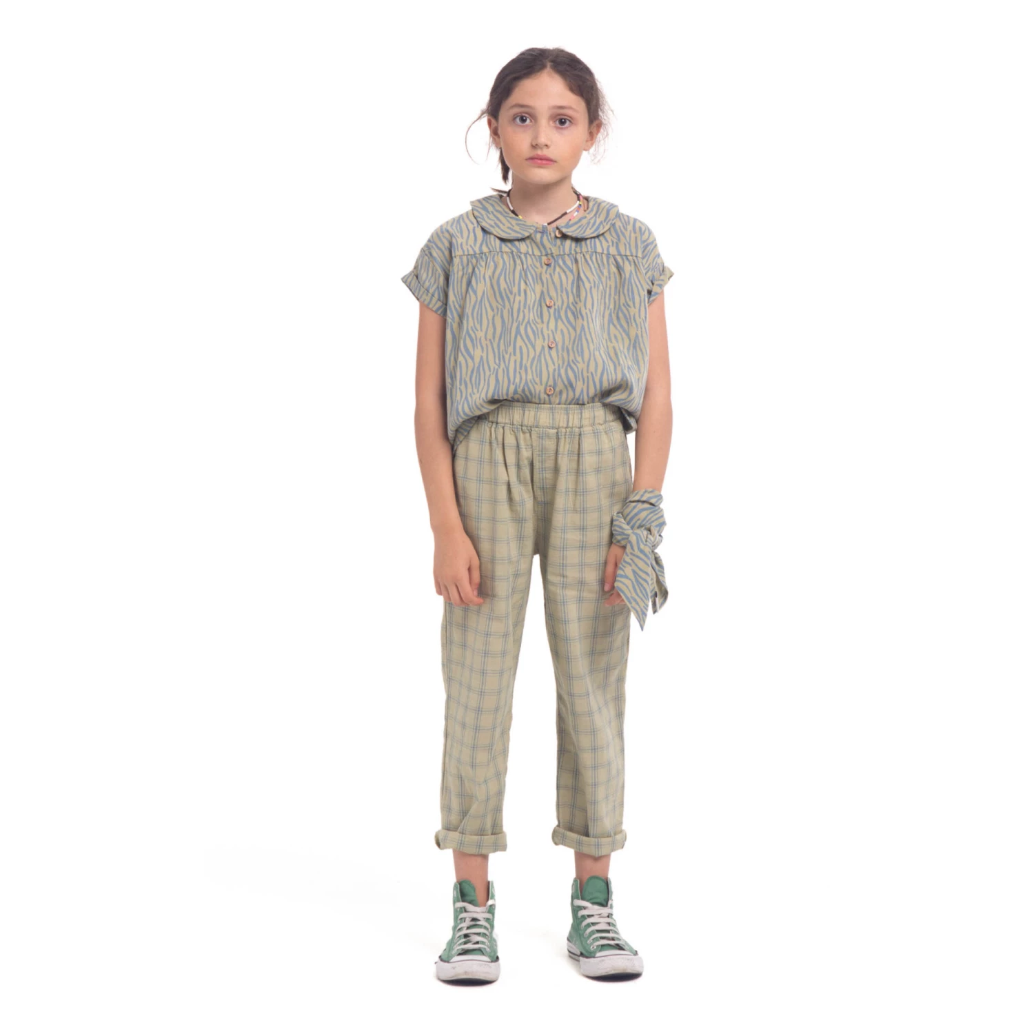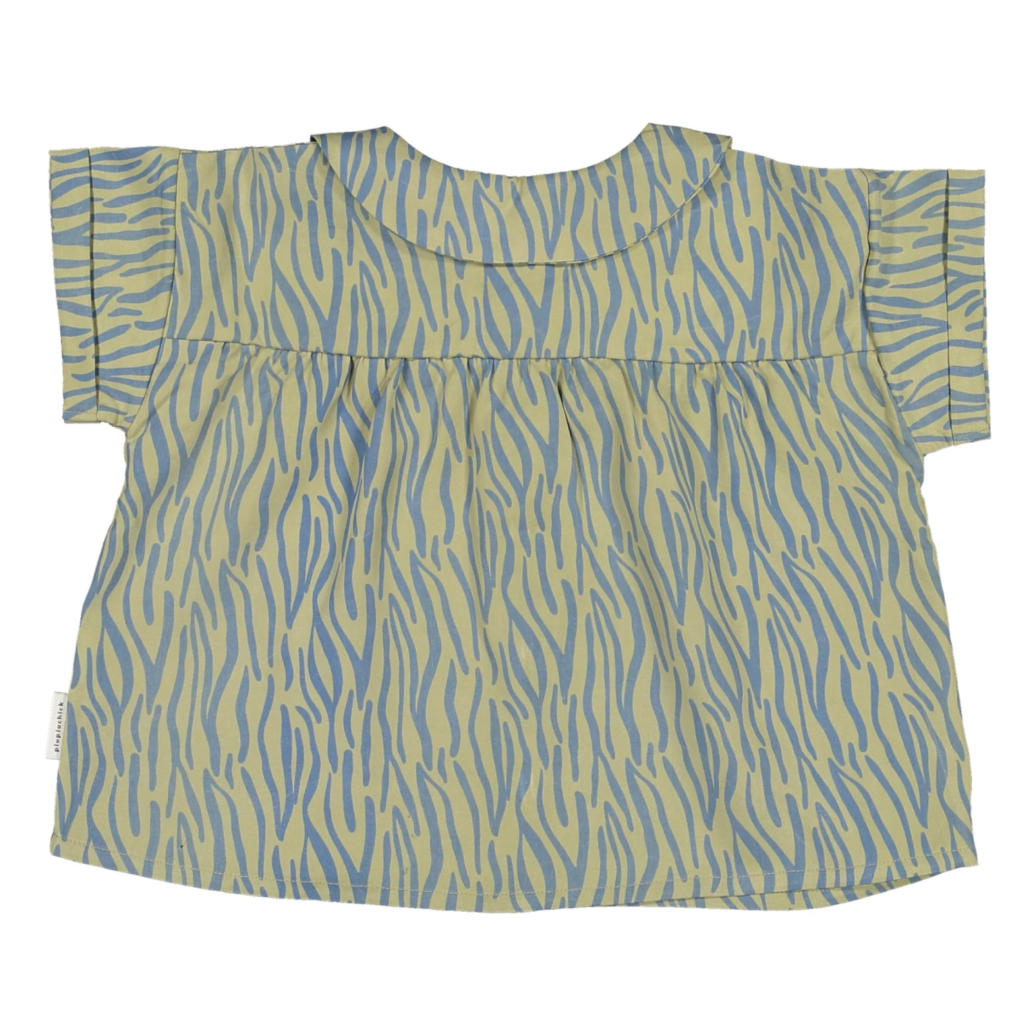 - Flowy, Short sleeves, Sleeve turn-ups, Pleated, Peter Pan collar