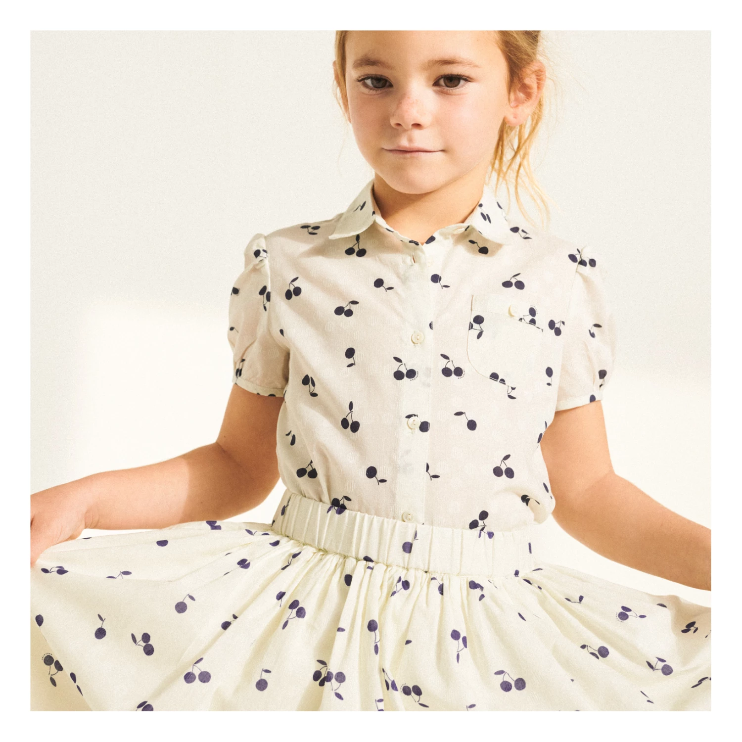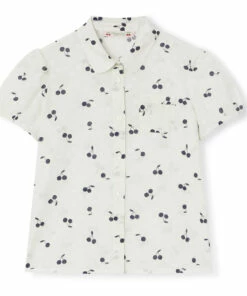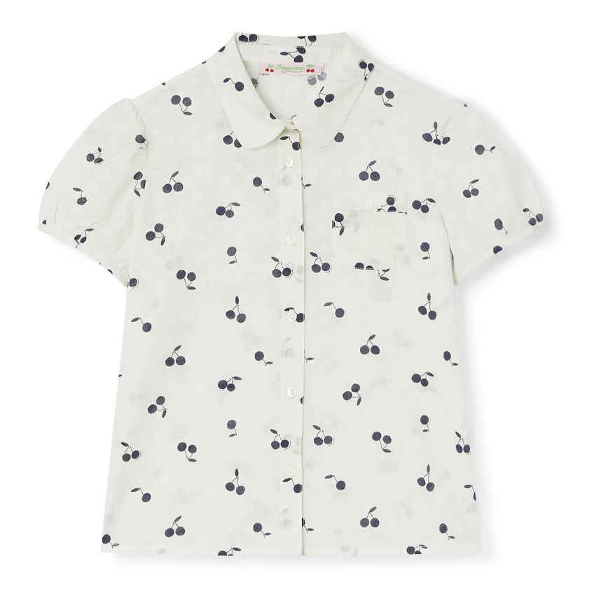 - Top stitched, Flowy, Lightweight and comfortable, Balloon sleeves, Short sleeves, Front patch pocket(s), Peter Pan collar