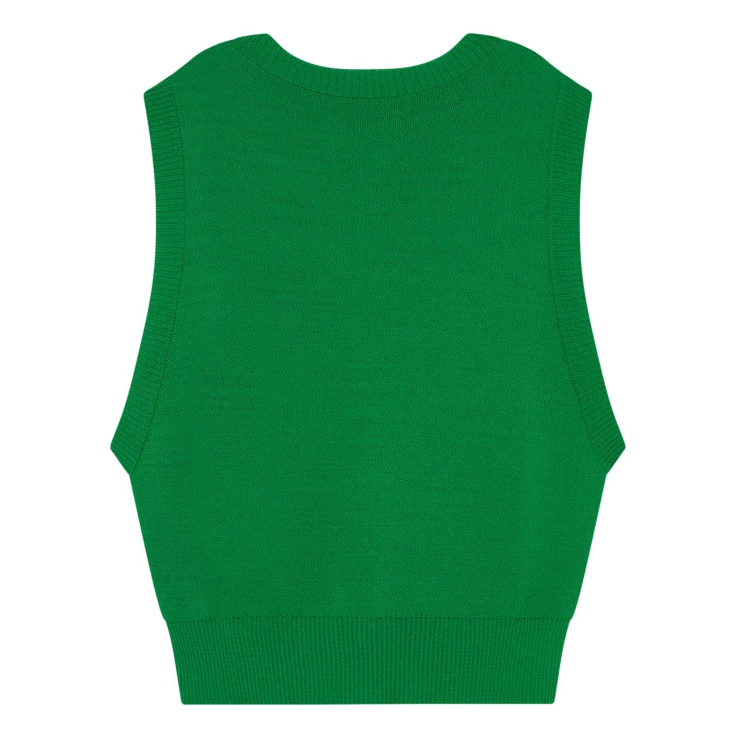 - V neck, Embroidered logo, Ribbed edges, Sleeveless, Decorative knit