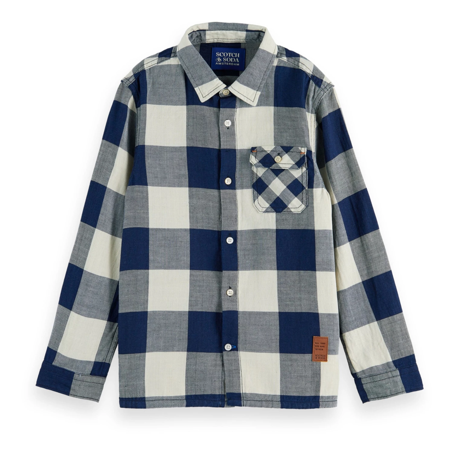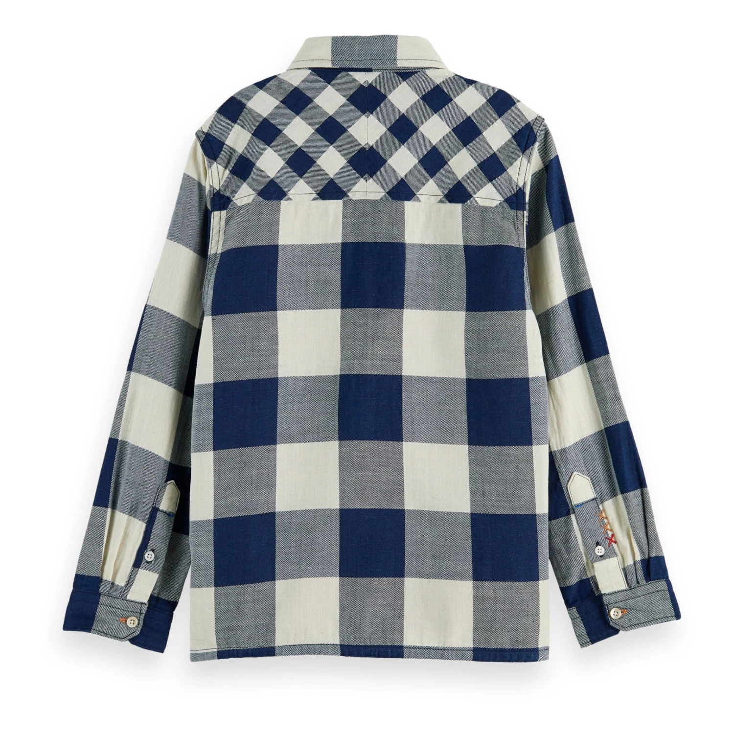 - Long sleeves, Breast pocket(s), Buttoned cuffs, Contrasting top stitch, Sewn-in brand label, Embroidery, Shirt collar