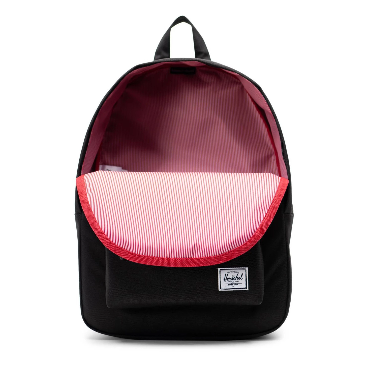 - Striped print lining, Padded straps, Handle on the top