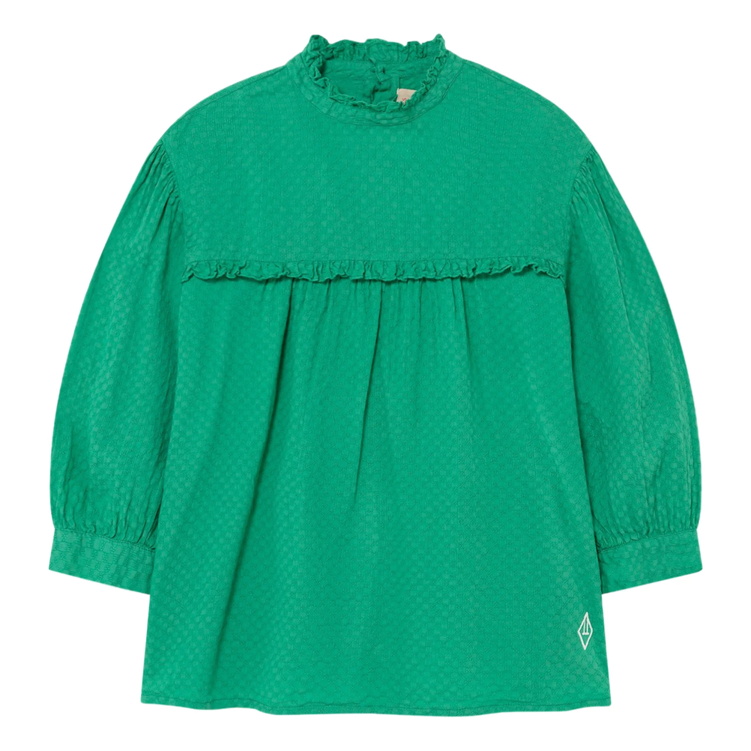 - Gathered details, Flowy, Embroidered logo, Puff sleeves, Long sleeves, Buttoned cuffs, Pleated, Gathered collar