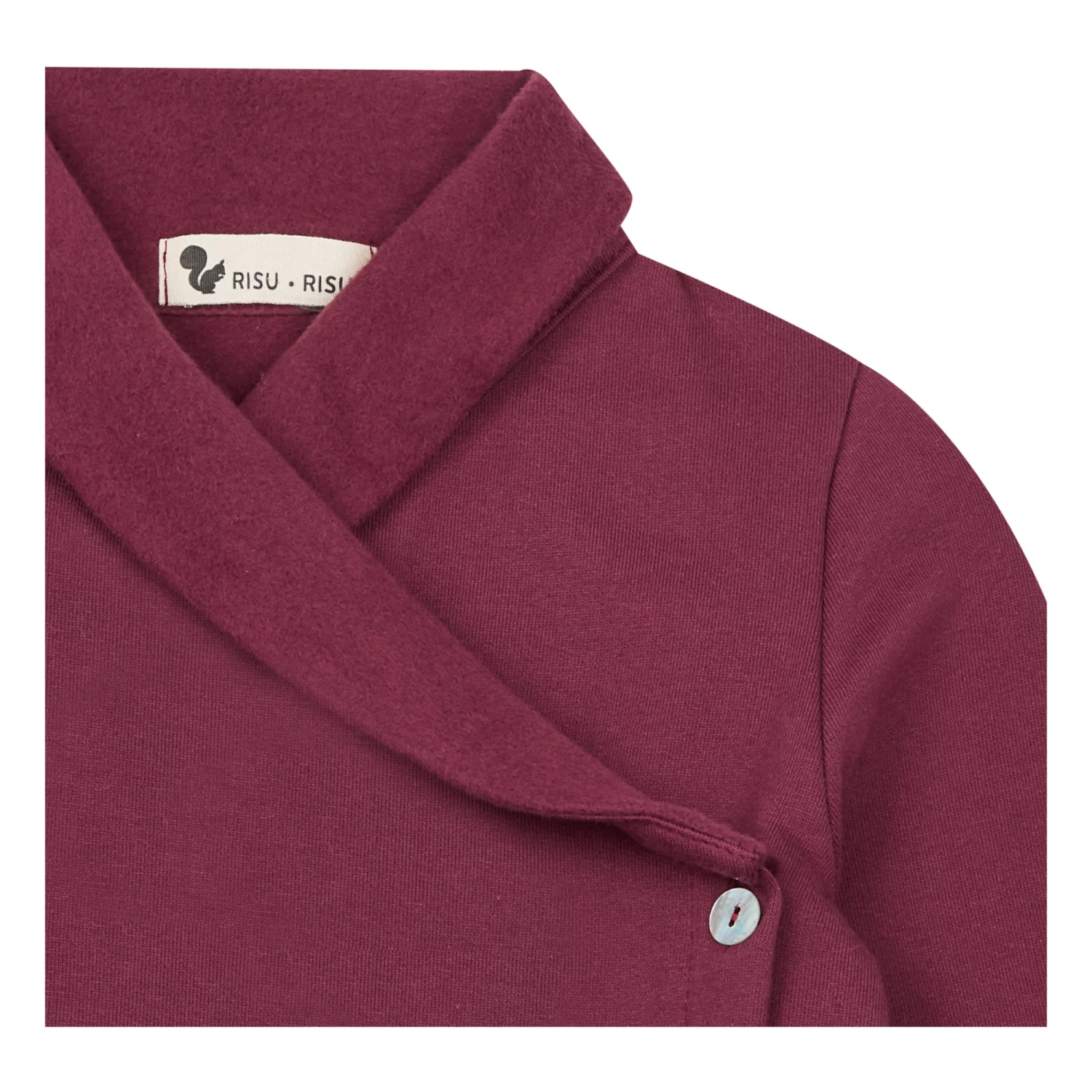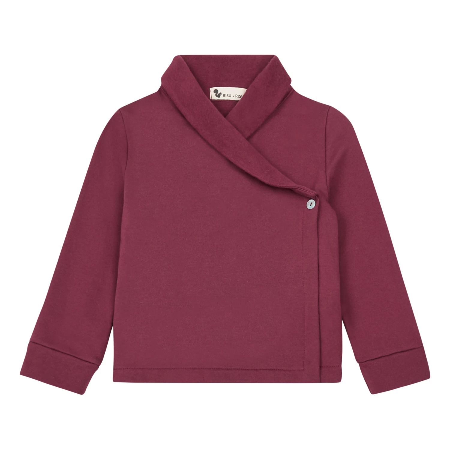 - Wrap-over neckline, Long sleeves, Fleece, Ribbed edges, Comfortable