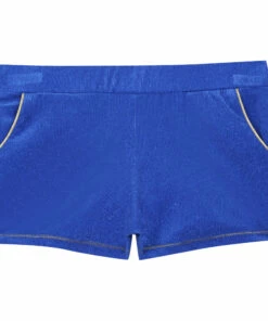 - Details : Elastic waist, Side pockets, Gold border, Gold topstitching