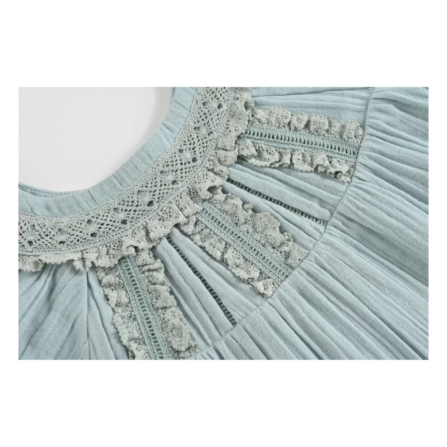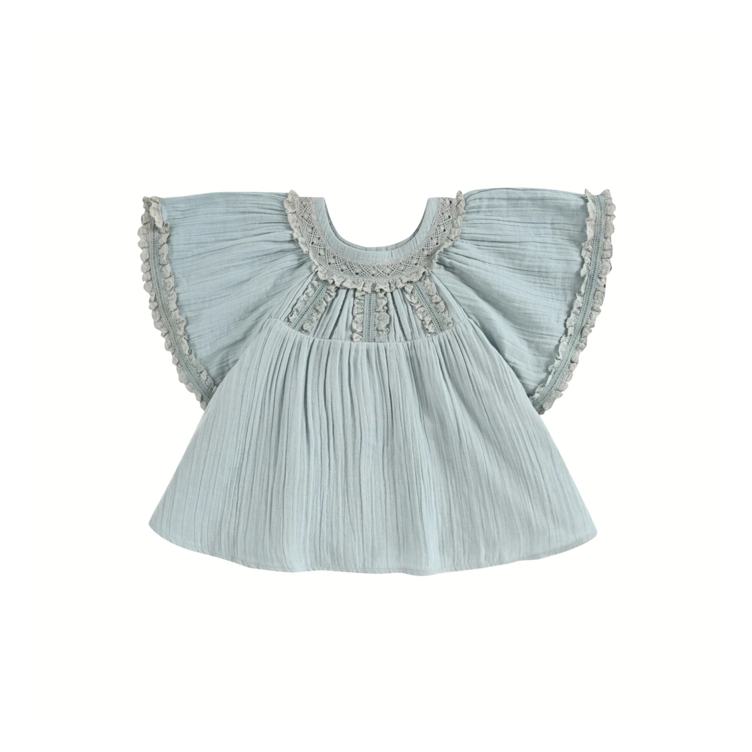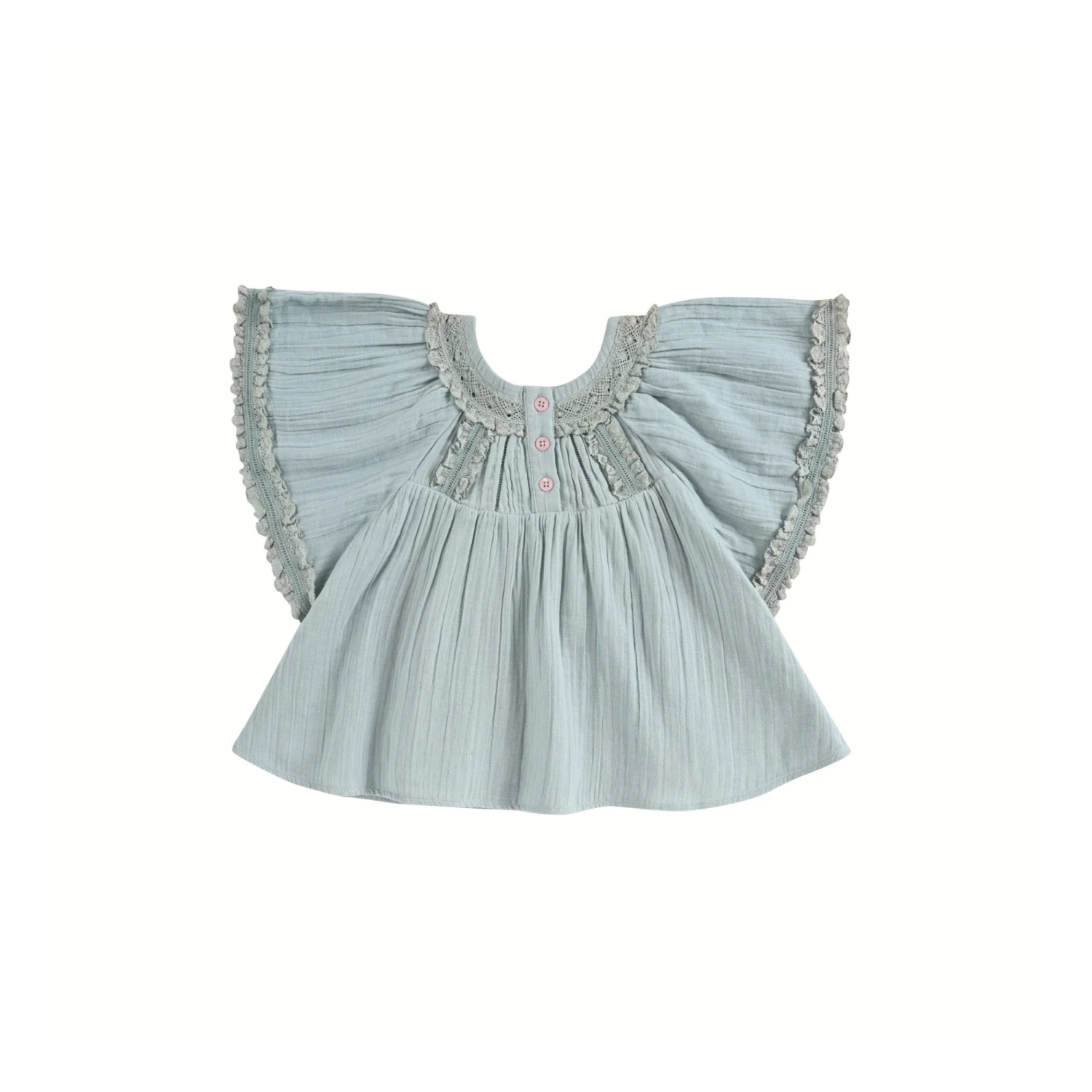 - Lined, Lace details, Crew neck, Butterfly sleeves, Raglan sleeve, Pleated shirtfront, Contrasting edges, Openwork, Embroidery
