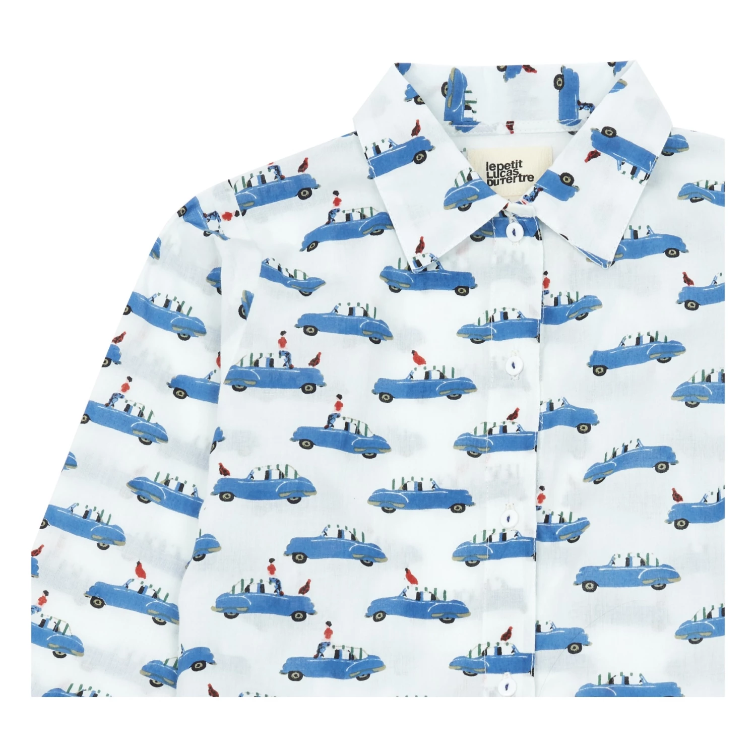 - Details : Car motif, Classic collar, Long sleeves, Elastic waist, Button tab, Gathered