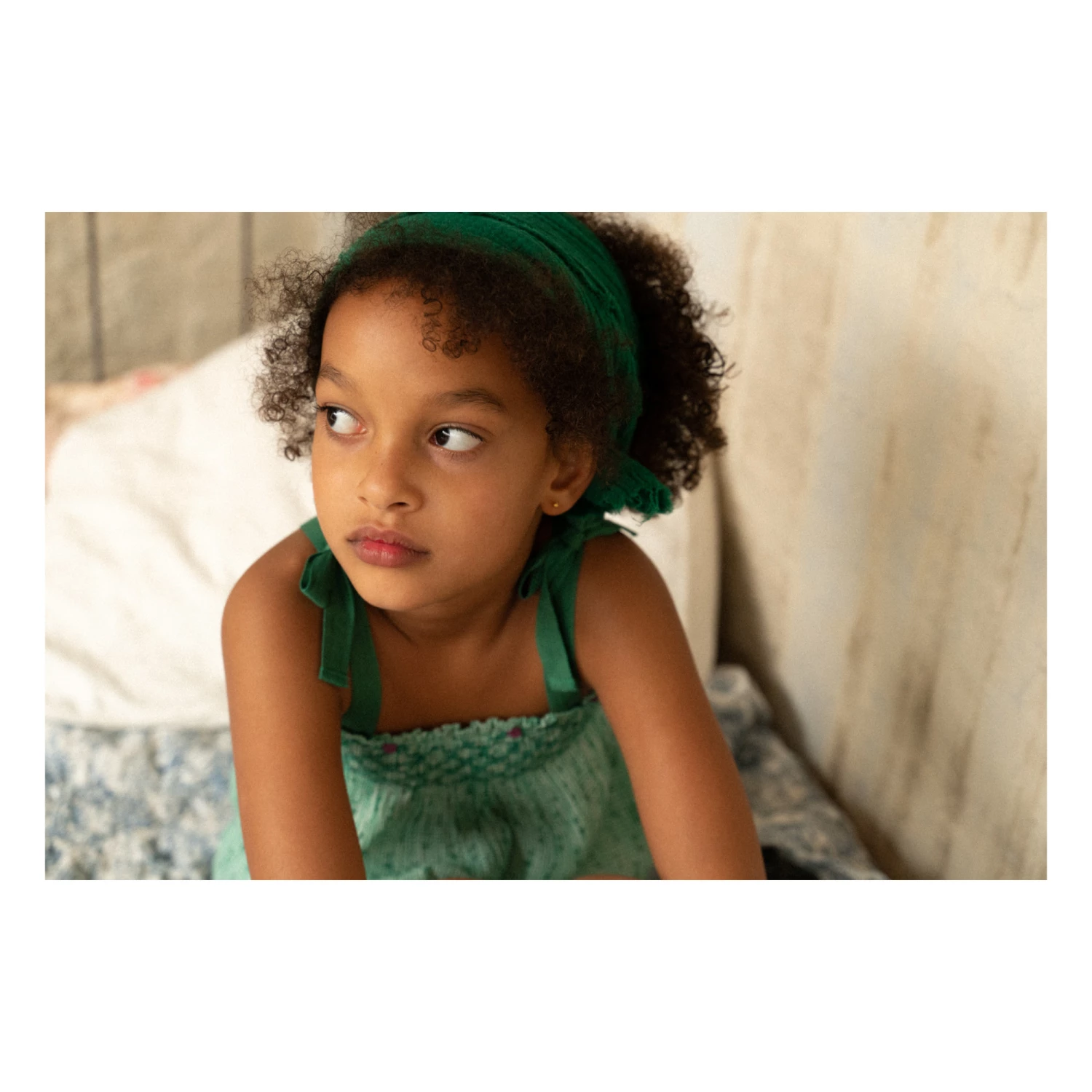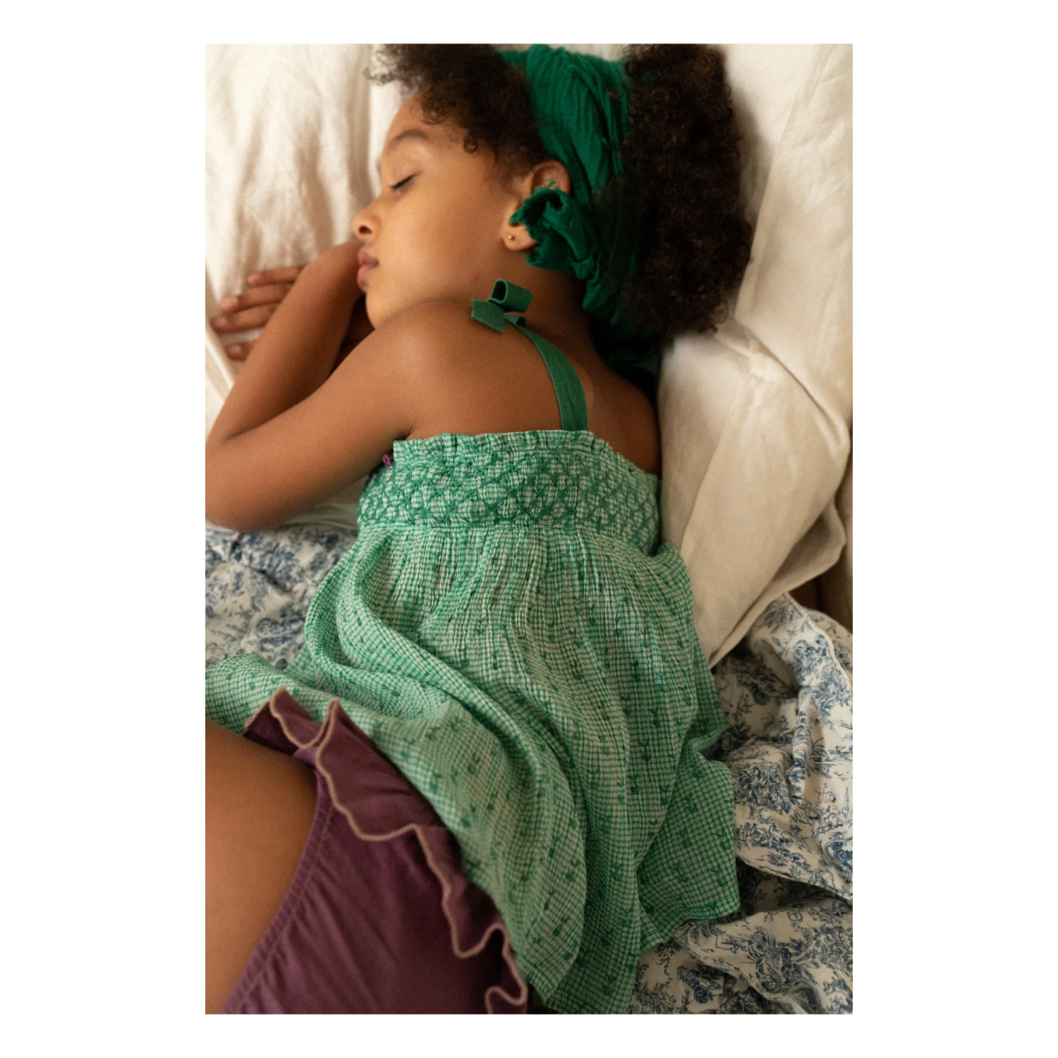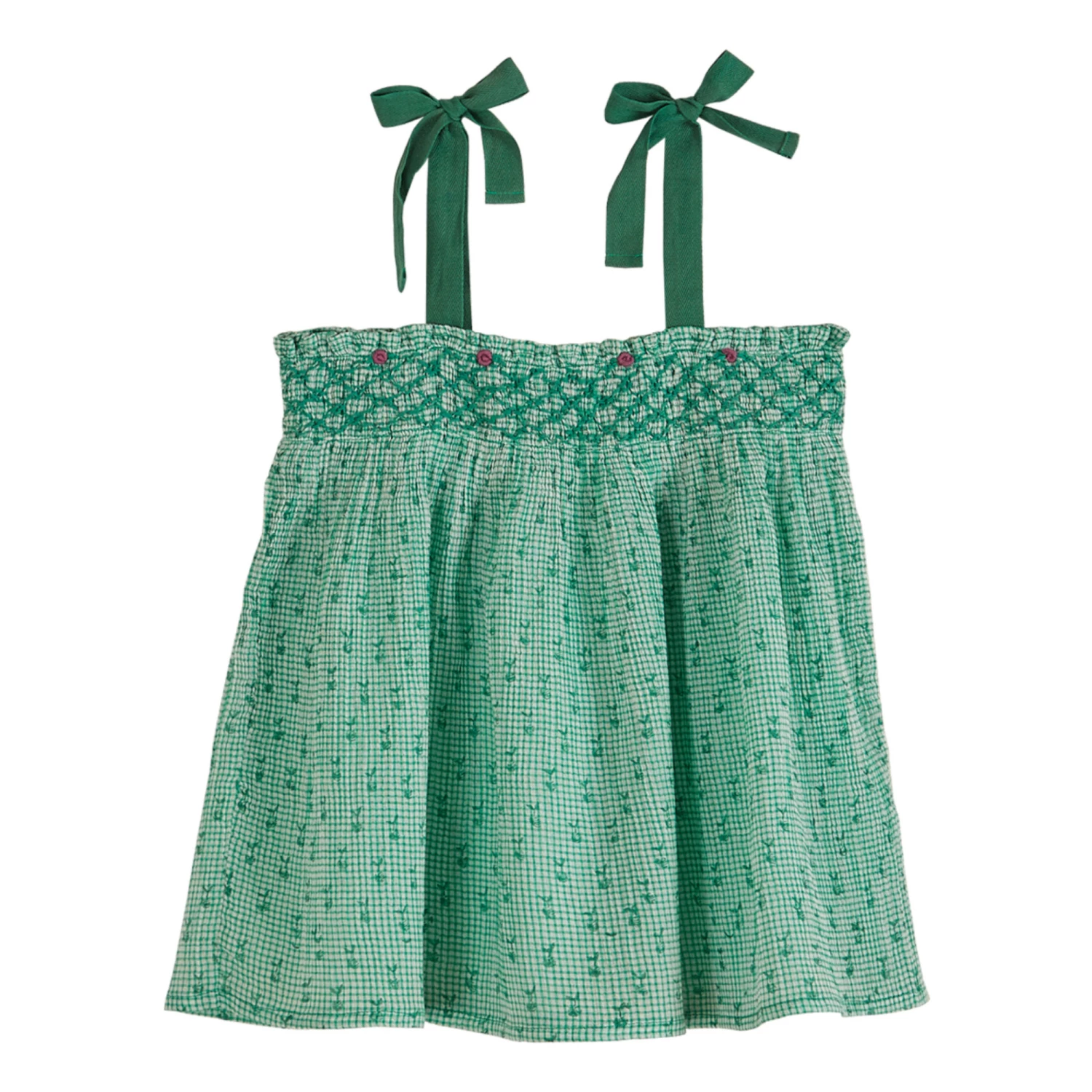 - Square neck, Flowy, Smocked shirtfront, Pleated, Tie up straps, Adjustable, Gathered collar