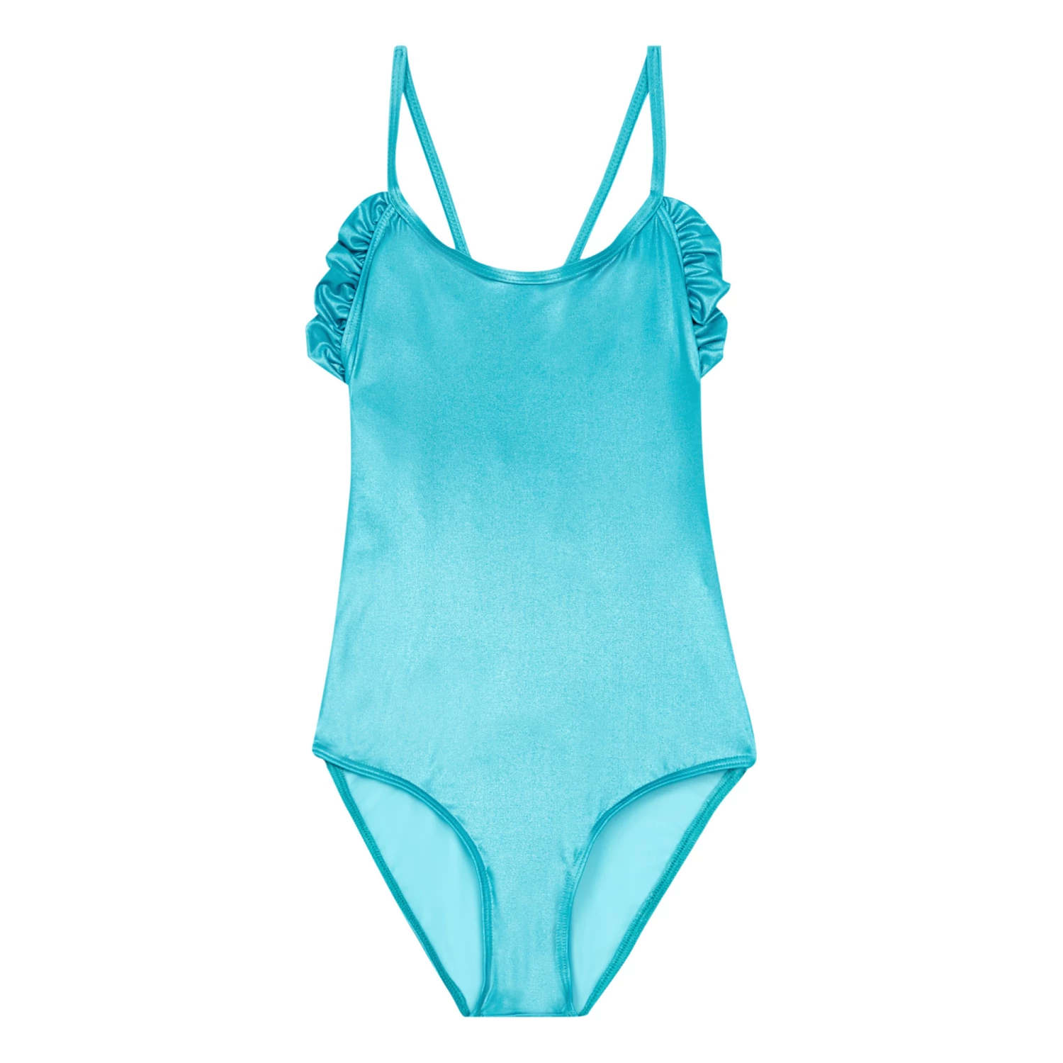 - Low-cut back, Frilled yoke, Adjustable straps, Thin straps