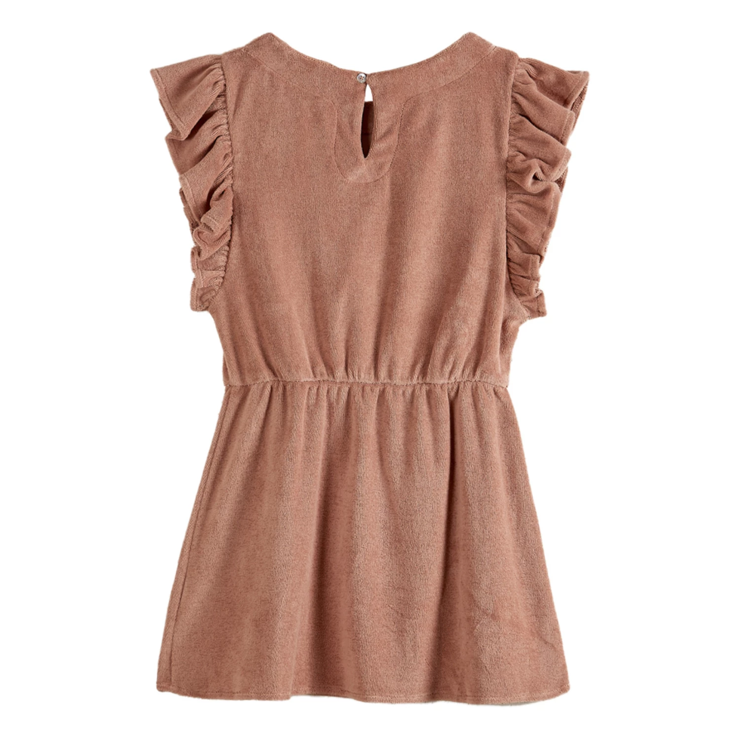 - Frilled sleeves, Crew neck, Embroidered logo, Knife pleat(s), Elasticated waist, Pleated