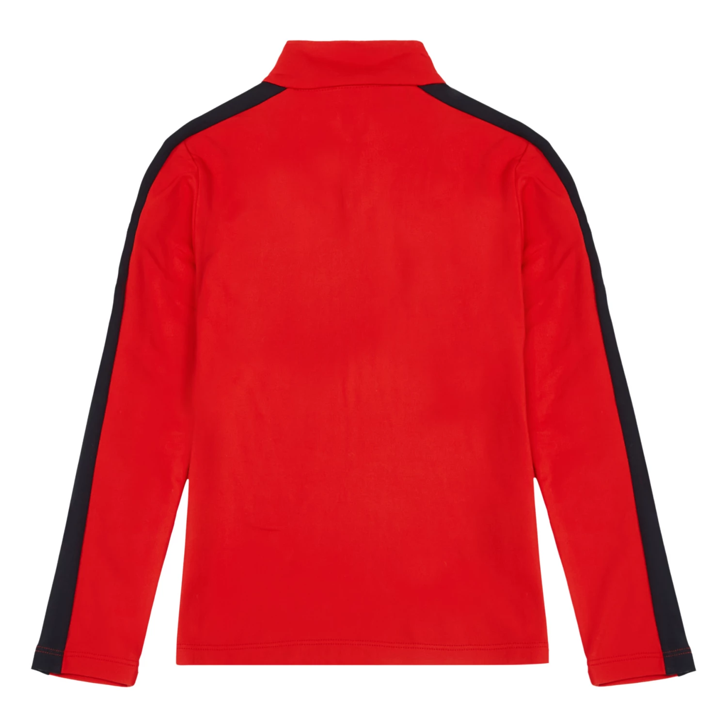 - Zip collar, Sewn-in logo , Contrasting stripes, Long sleeves, Embroidered patch(es), Top stitched edges, Warm and comfortable