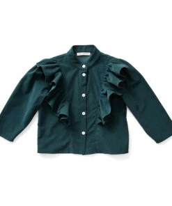 - Gathered armholes, Frilled yoke, Long sleeves, Top stitched edges, Mandarin collar