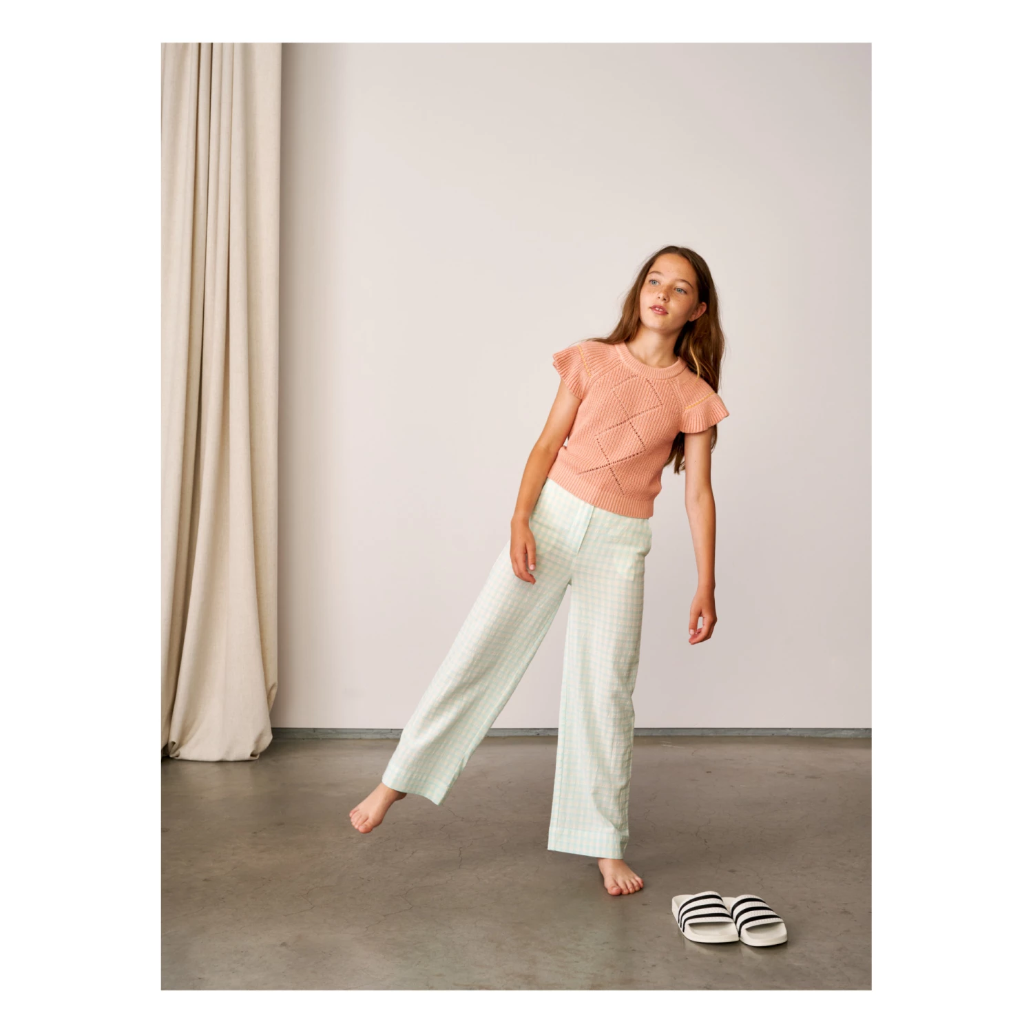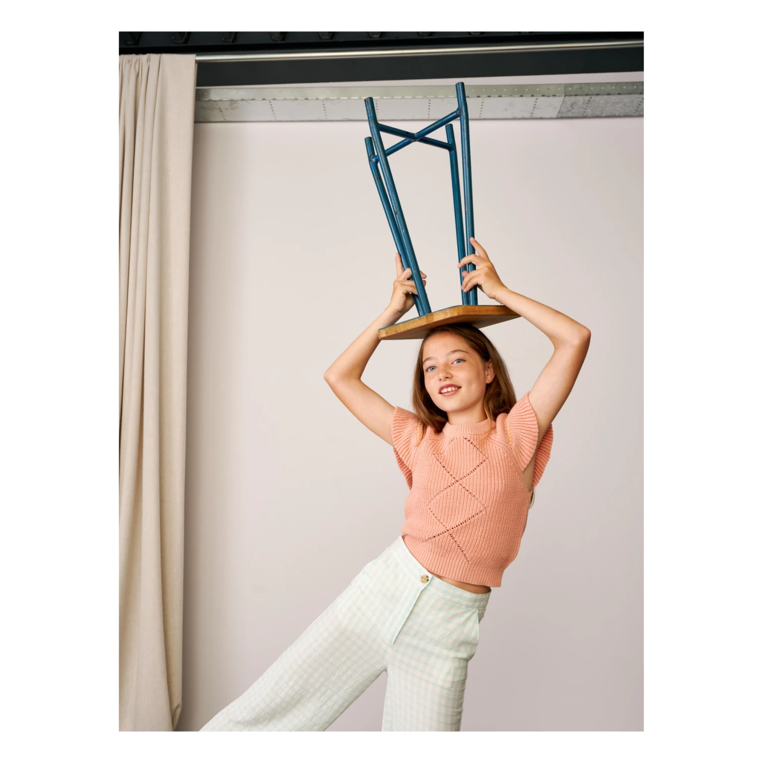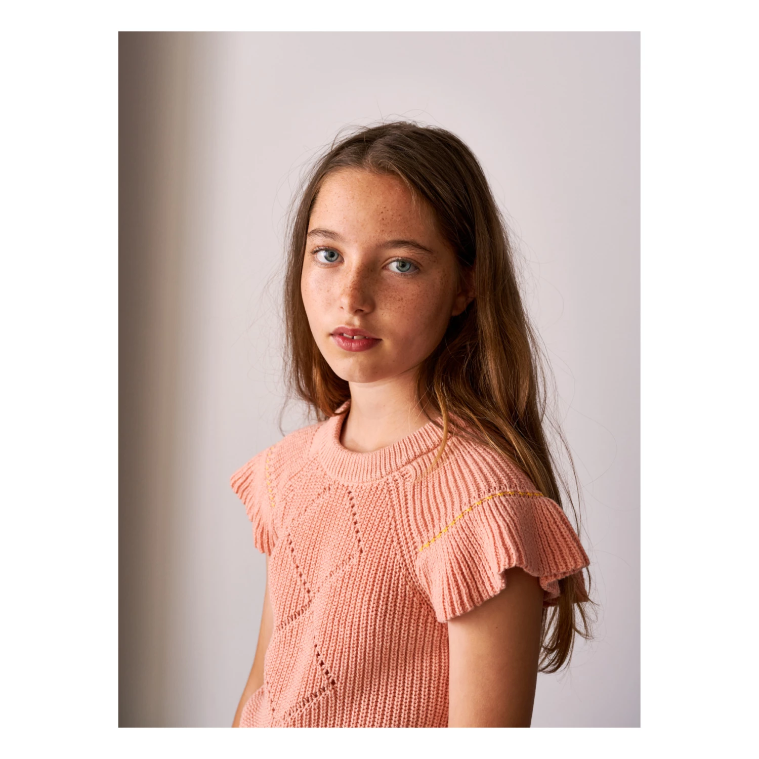 - Ribbed, Contrast stitching, Frilled sleeves, Short sleeves, Raglan sleeve, Close-fitting at bottom, Decorative knit, Openwork knit, Ribbed neckband