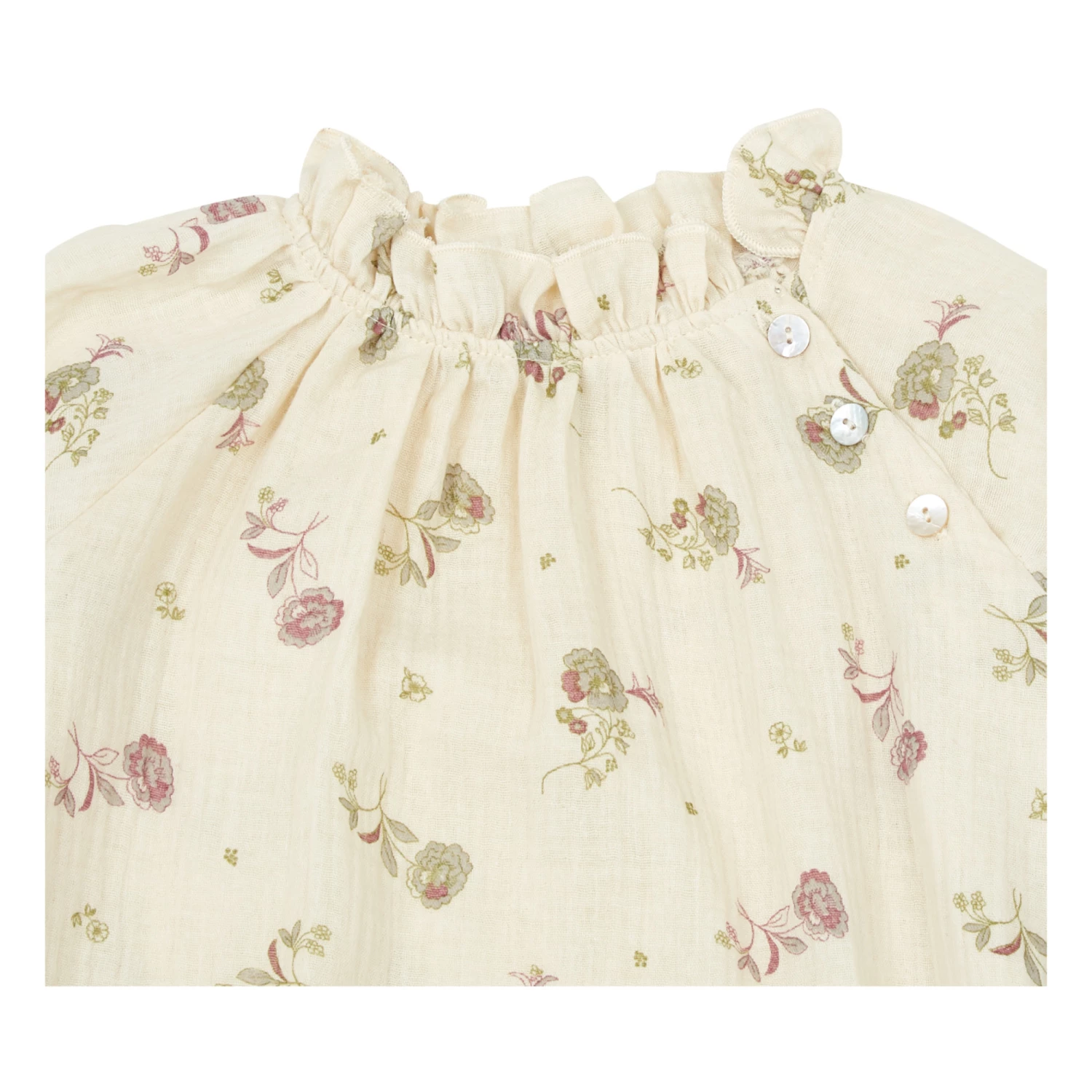 - Button(s) on shoulder, Mother-of-pearl button(s), Plain