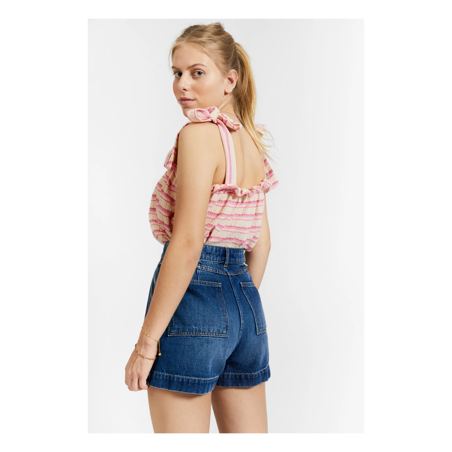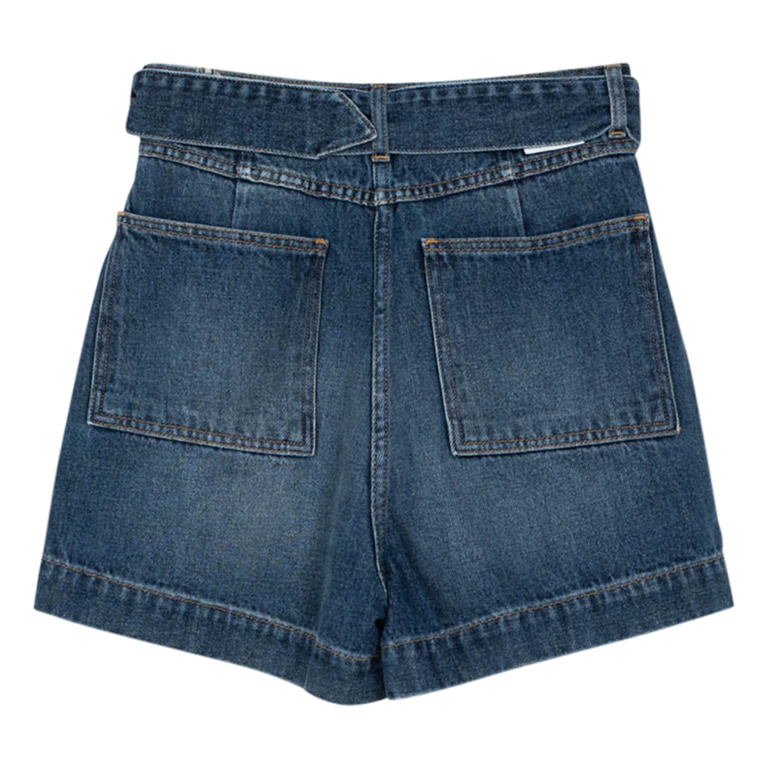 - Stonewashed, Back patch pocket(s), Italian pockets, Studs, Contrasting top stitch, Belt loops at waist, Sewn-in brand label, Inverted pleats
