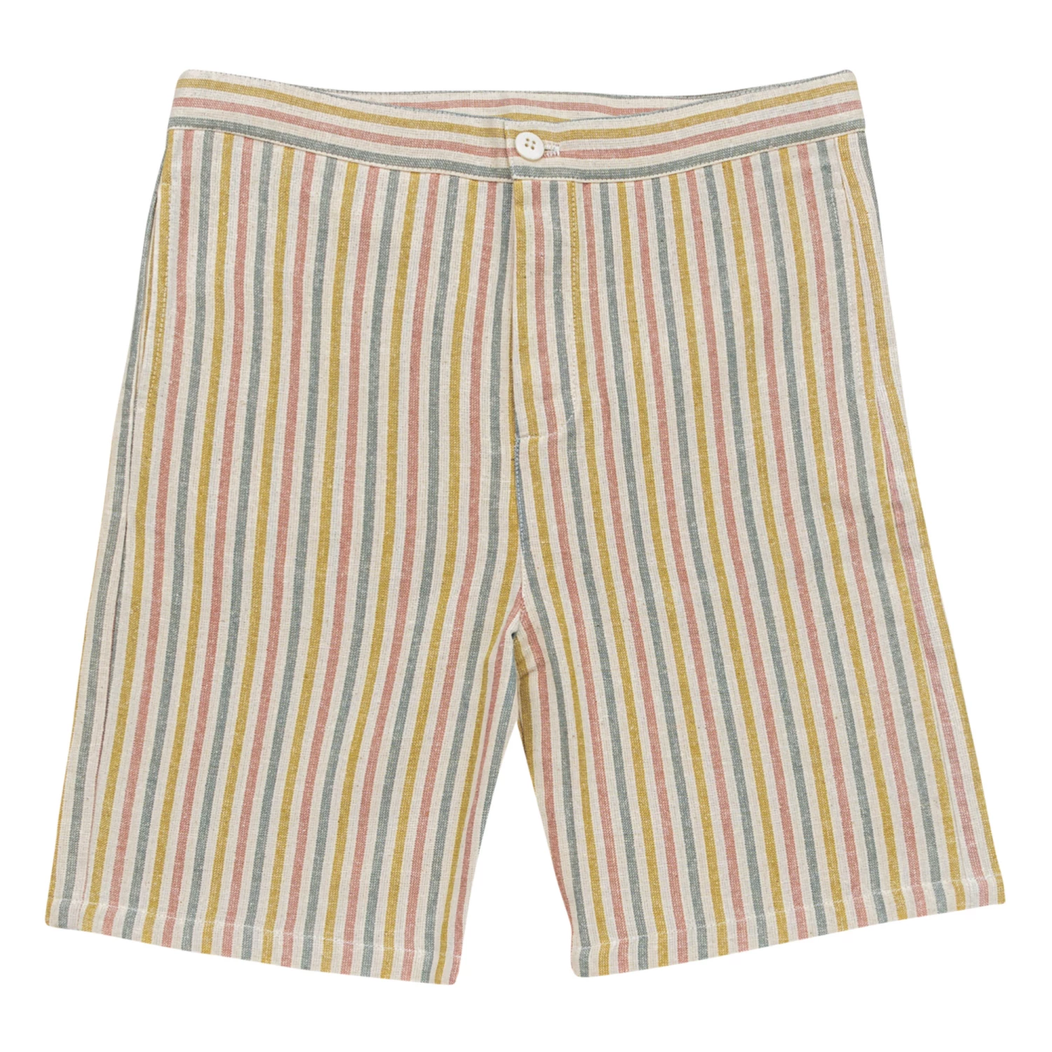- Button(s) at the waist, Zip closure, Stripe print
