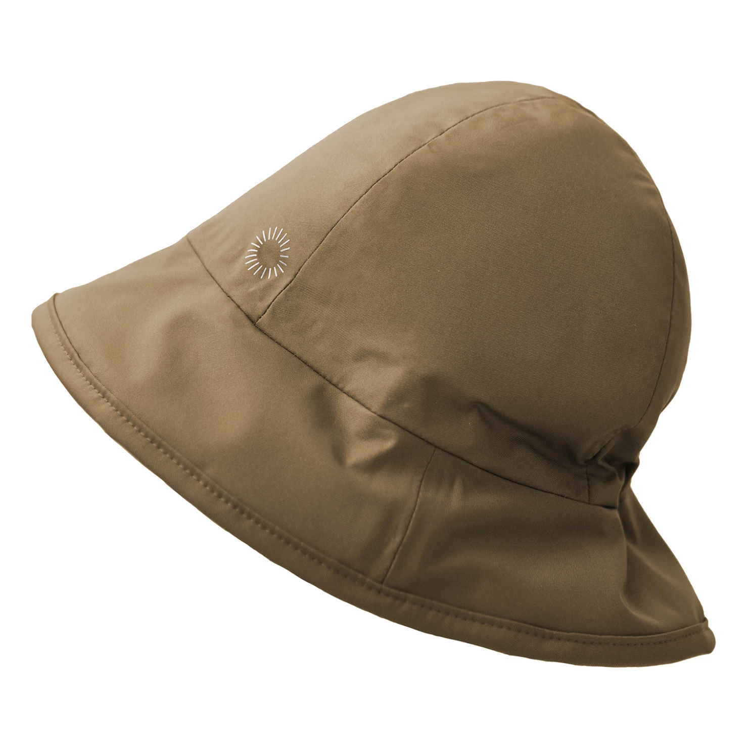 - Elastic interior, Waterproof, Logo on front, Breathable, Top stitched edges