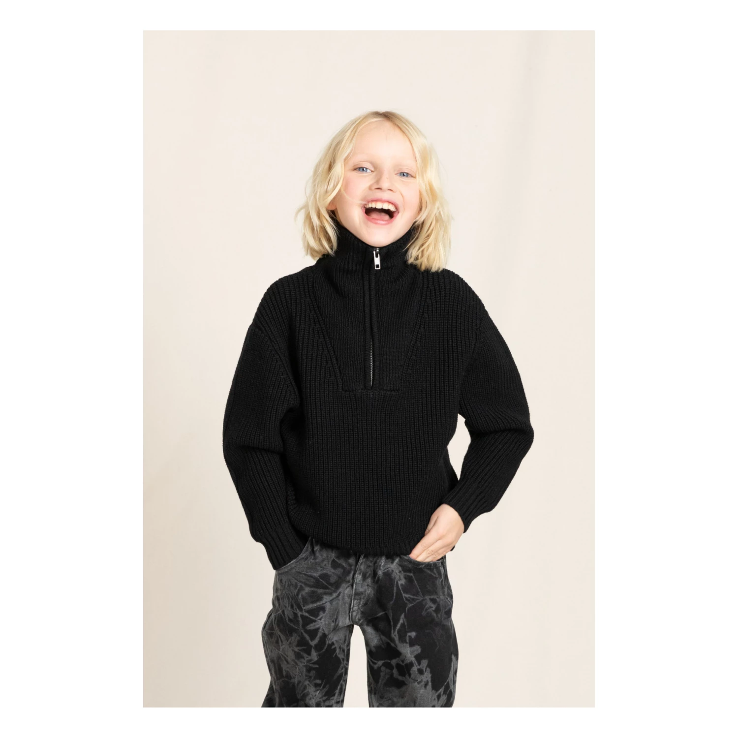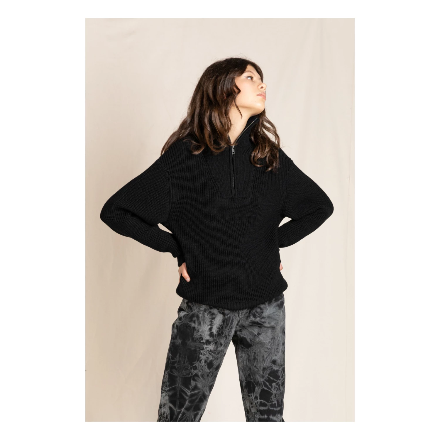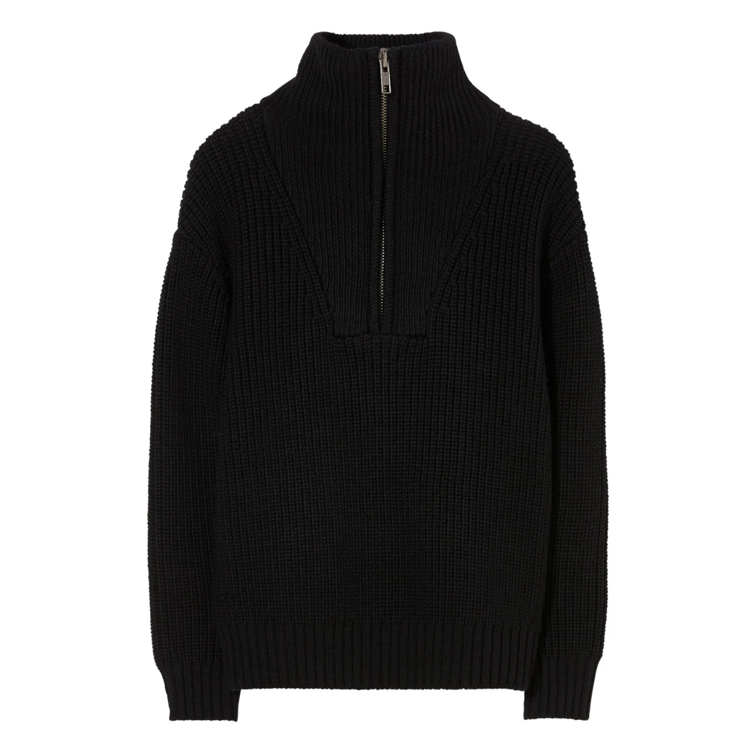 - Ribbed, Low armholes, Long sleeves, Ribbed edges, Warm and comfortable, Zipped roll neck collar