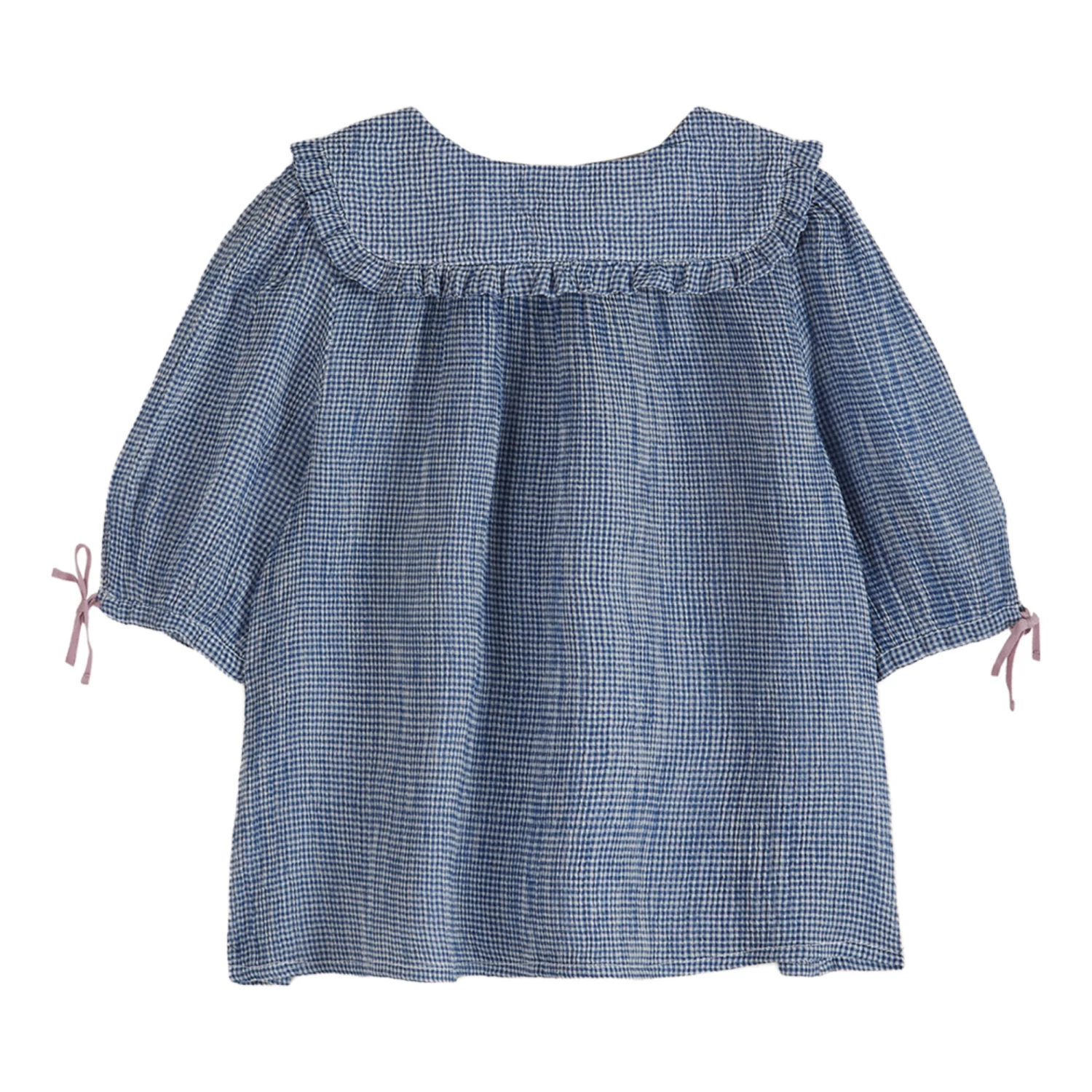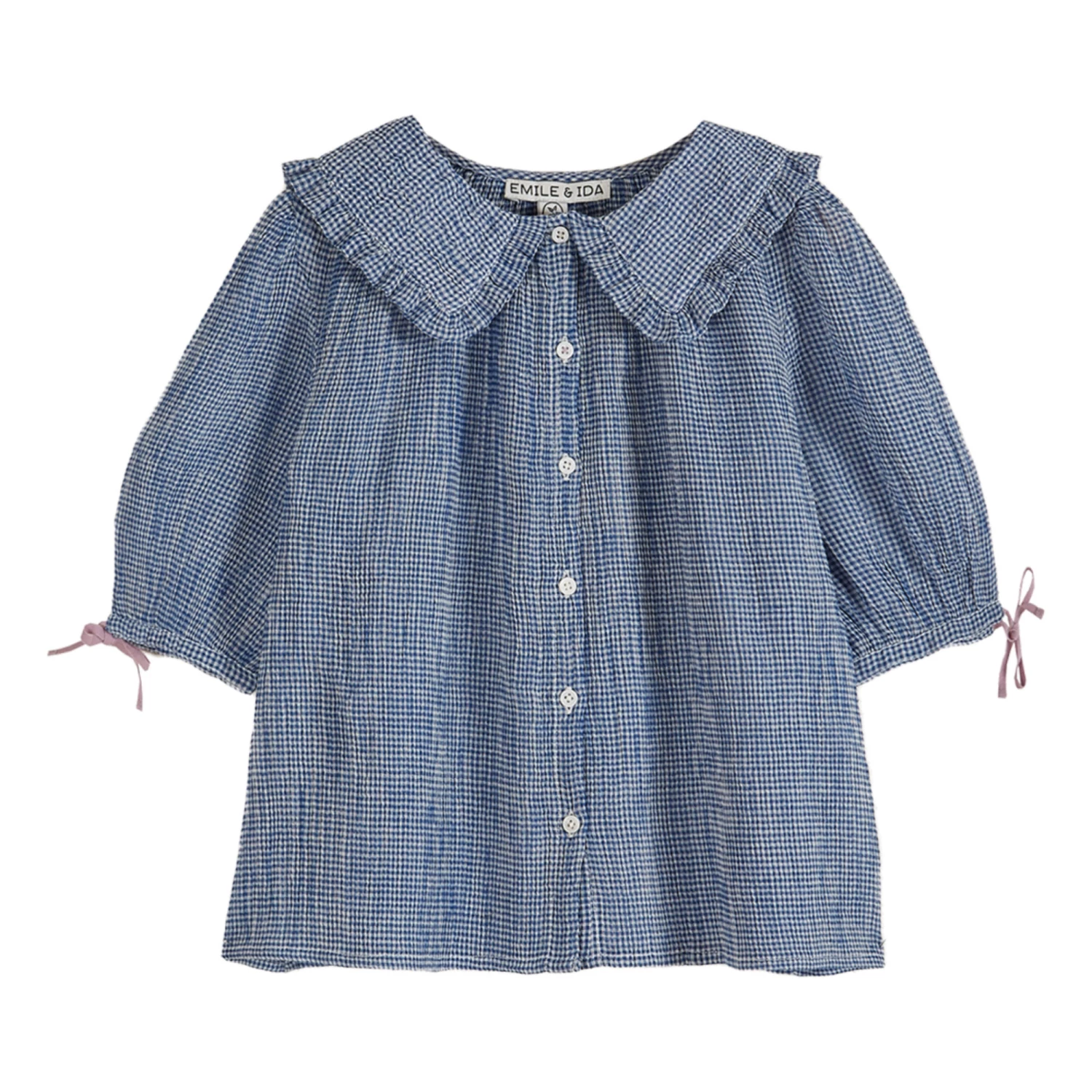 - Elastic sleeves, Gathered at the back, Crew neck, Top stitched, 3/4 sleeves, Adjustable cuffs, Frilled collar