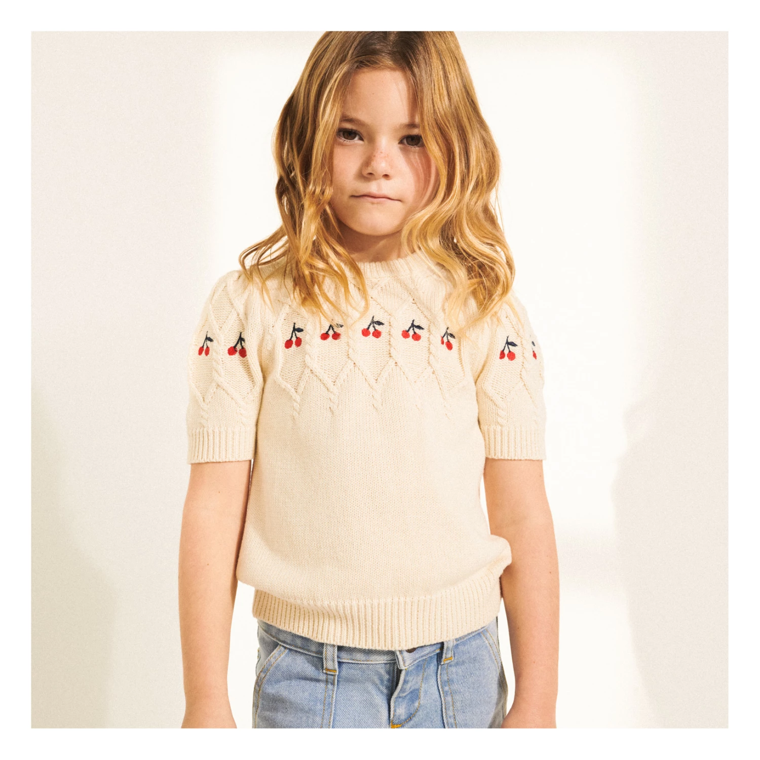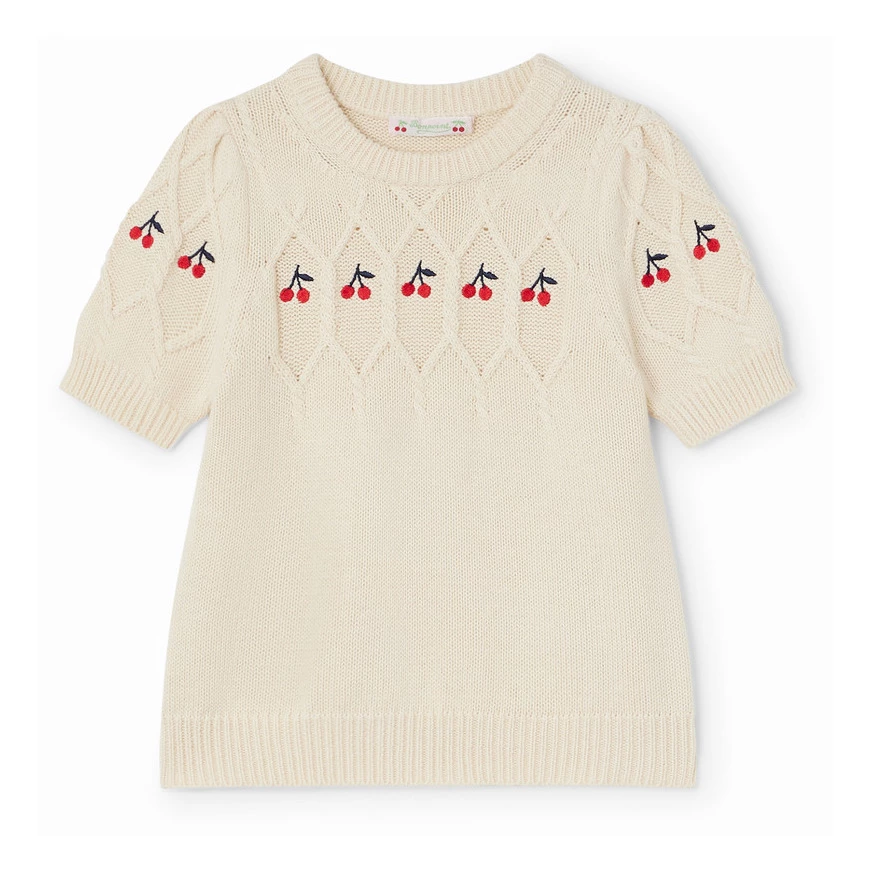- Crew neck, Short sleeves, Ribbed edges, Decorative knit, Embroidery