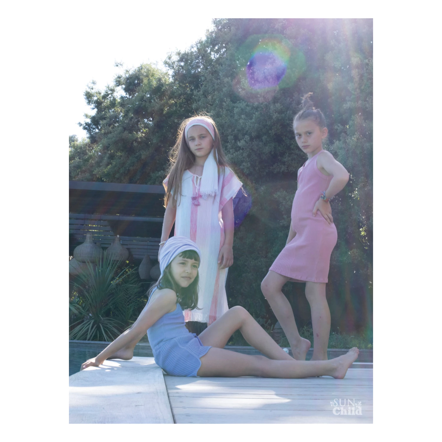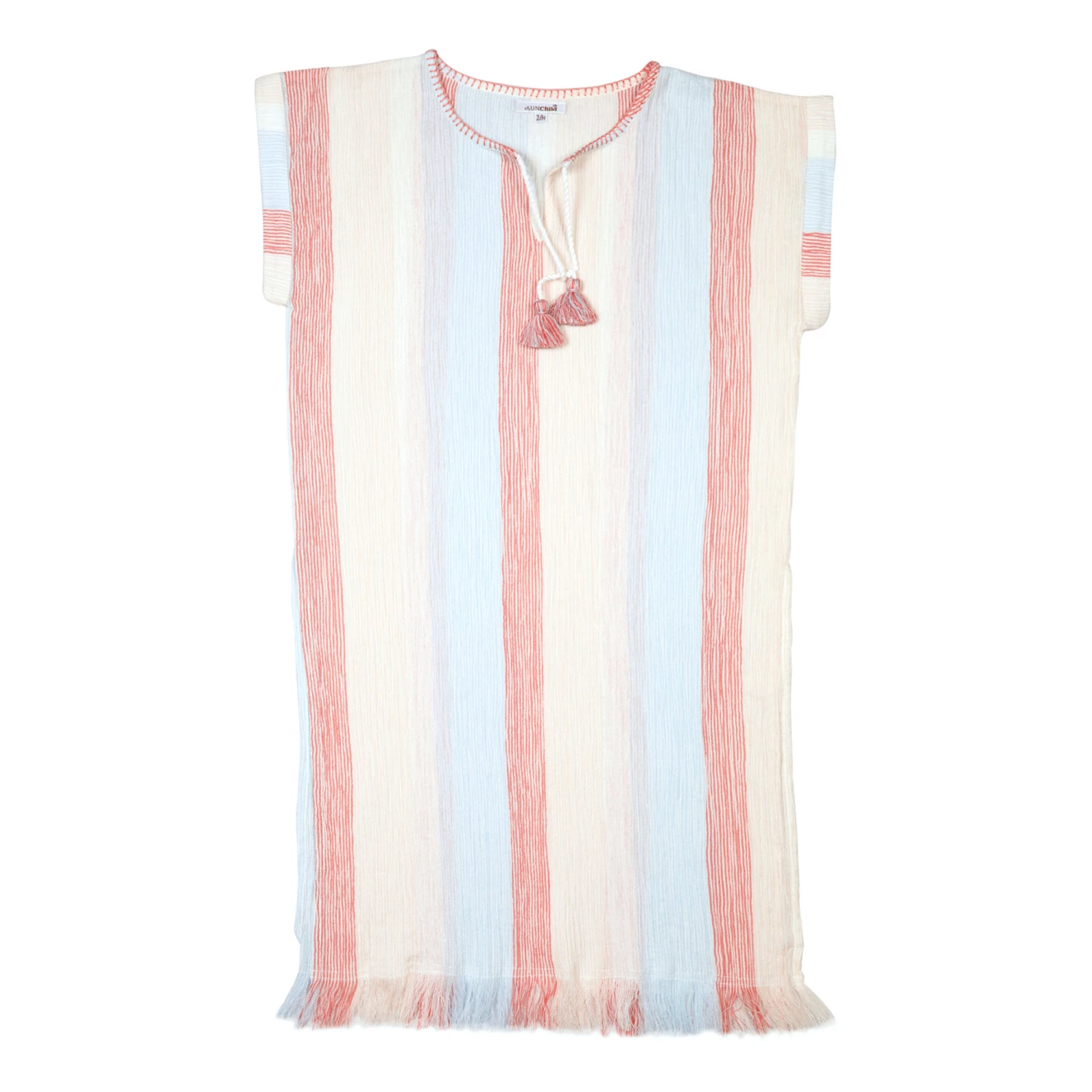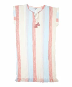 - Henley neck, Tie(s) at neckline, Fringed edges, Pompom(s), Sleeveless, Embroidery