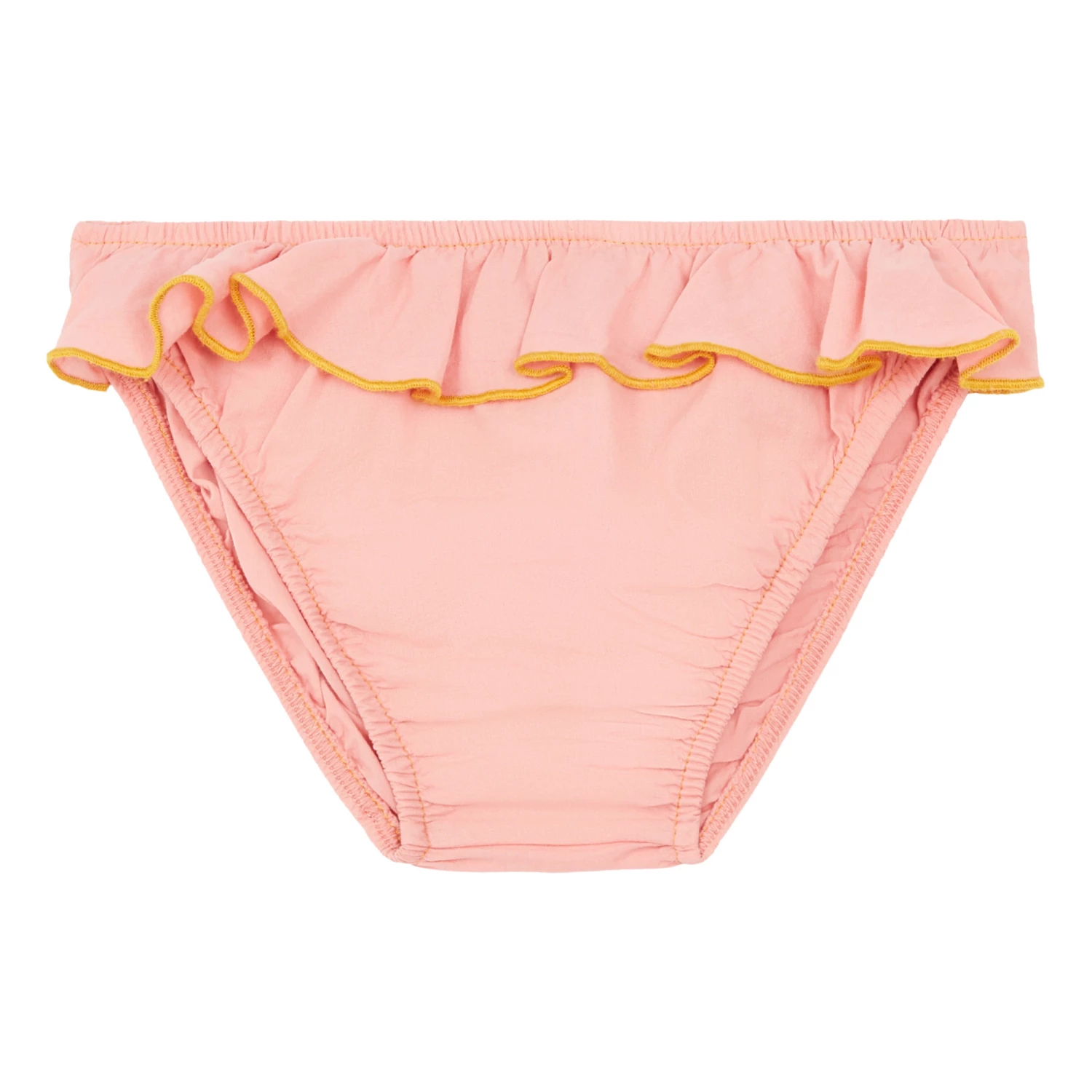 - Satin stitch edge finish, Frilled edges, Elasticated waist, Contrasting edges