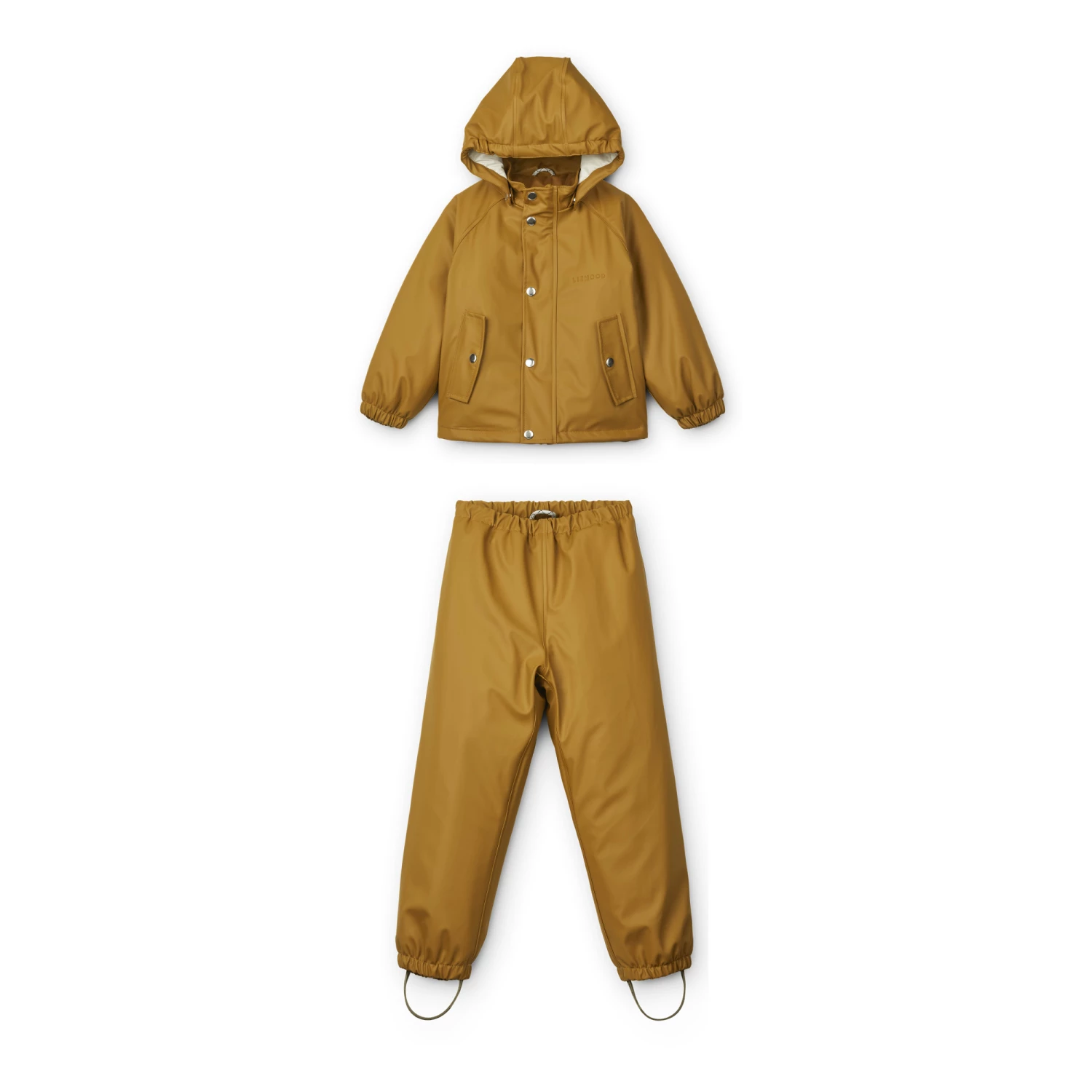 - Elastic at ankles, Envelope neck, Waterproof, Long sleeves, Press stud flap pocket(s), Elastic cuffs, Strap(s), Elasticated waist, Hood, Warm and comfortable