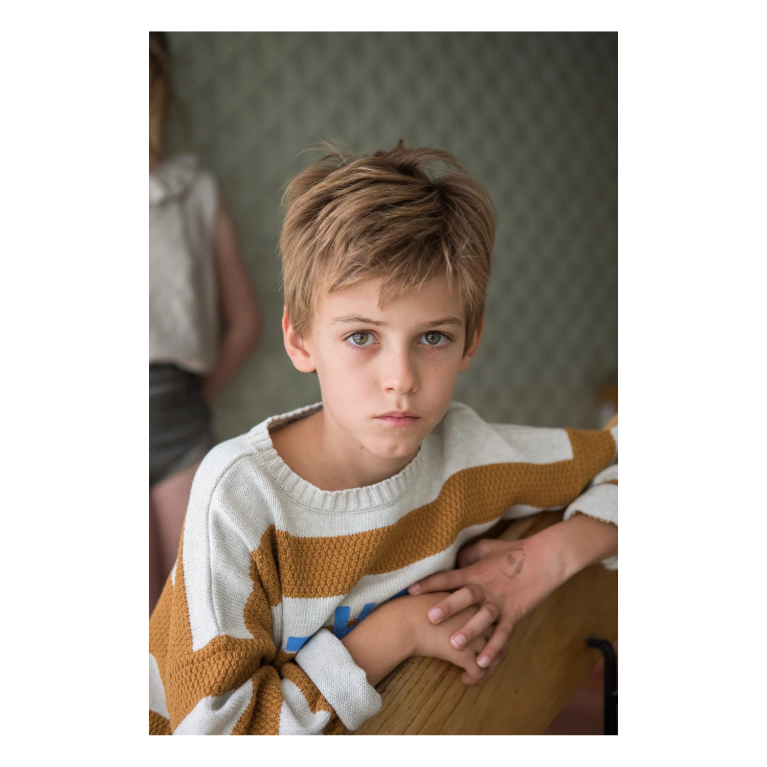 - Garment pulls on, Stripe print