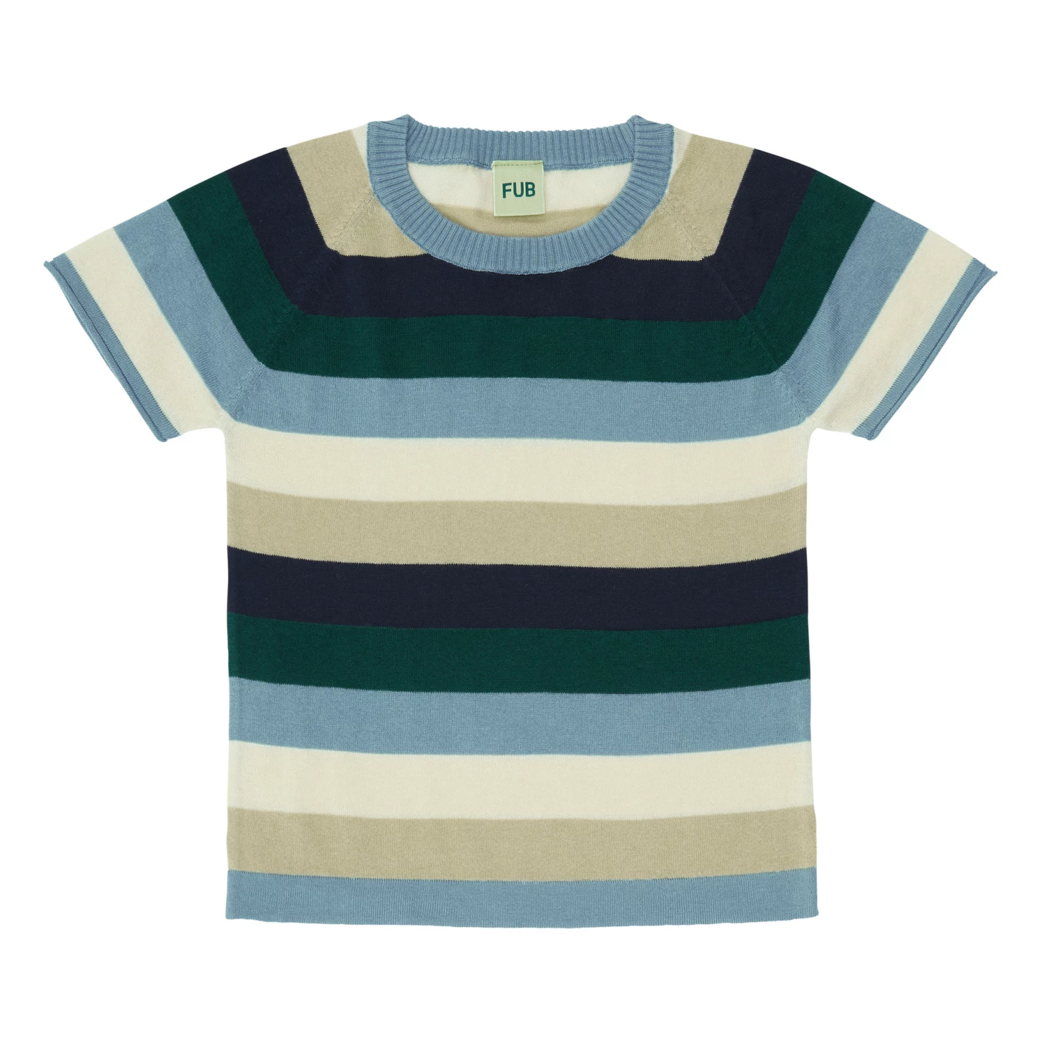 - Ribbed, Short sleeves, Tricolour, Rounded collar, Ribbed neckband