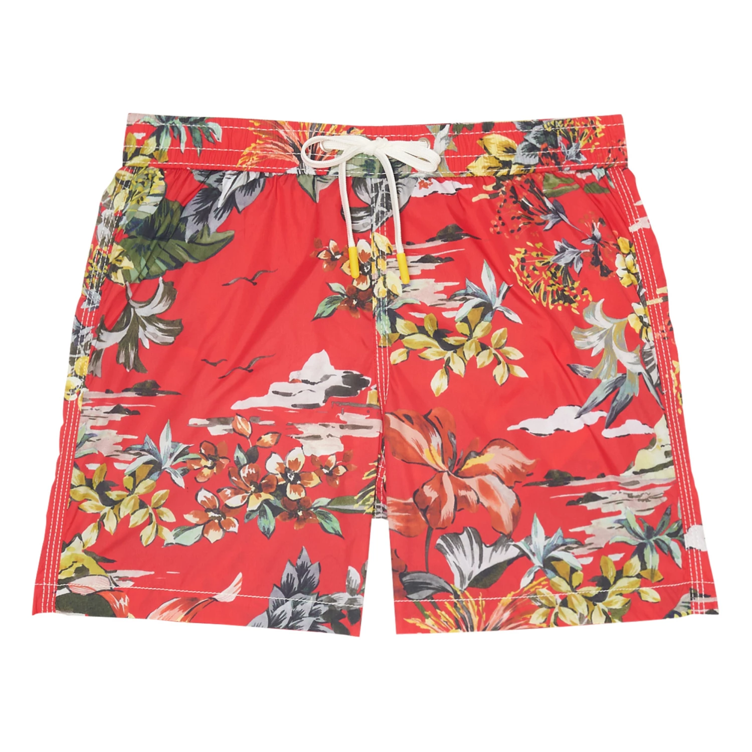 - Garment pulls on, Hawaiian print