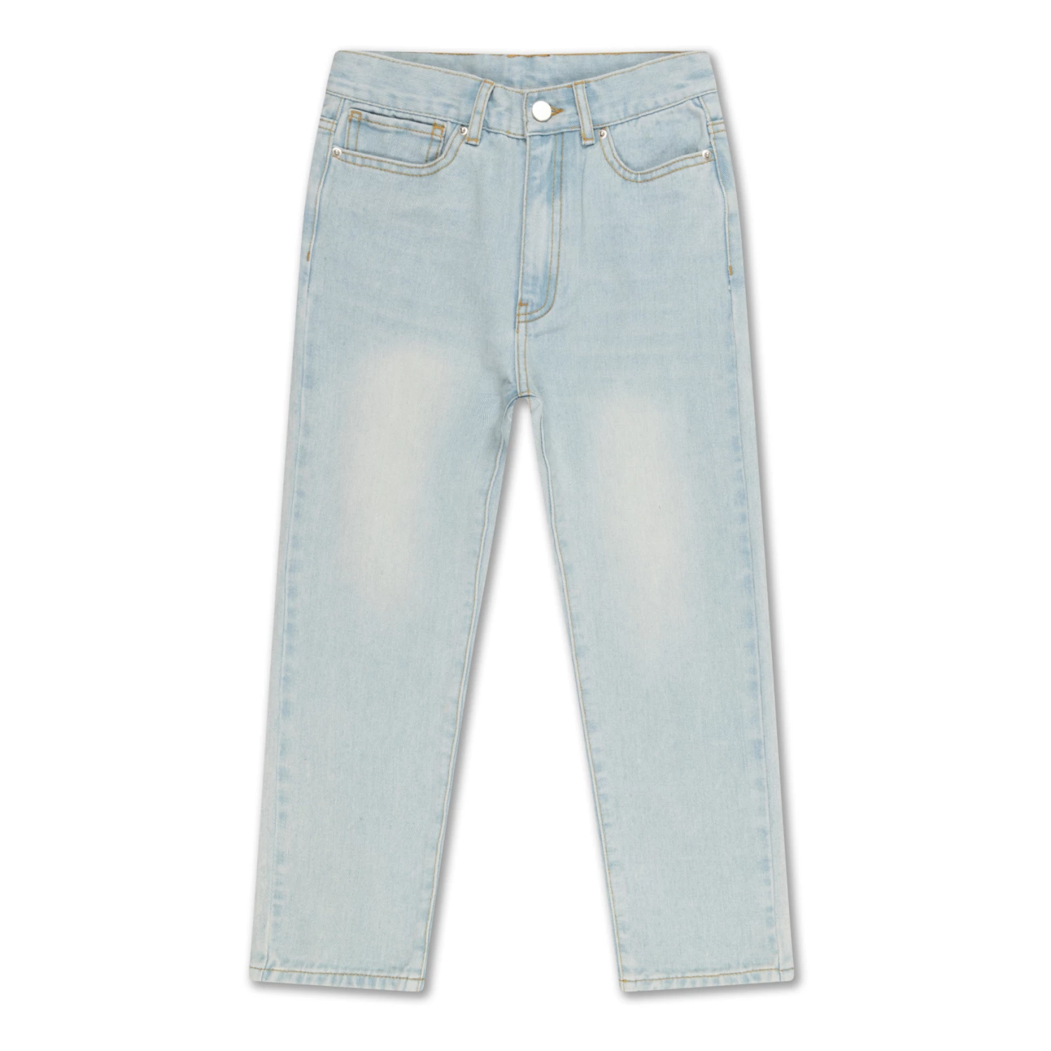 - Stonewashed, Studs, 5 pockets, Contrasting top stitch, Belt loops at waist, Adjustable waist, Comfortable