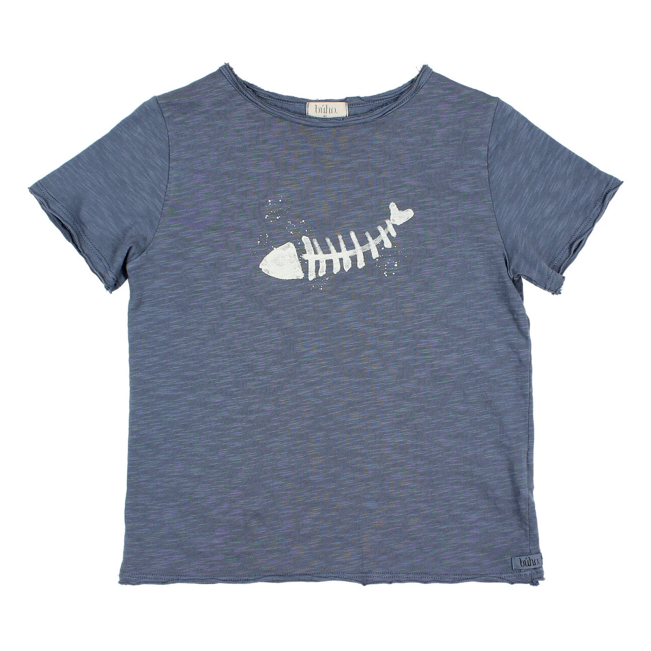 Coupon ✨ Fish Organic Cotton Slub T-shirt Blue Búho Fashion Children ⭐