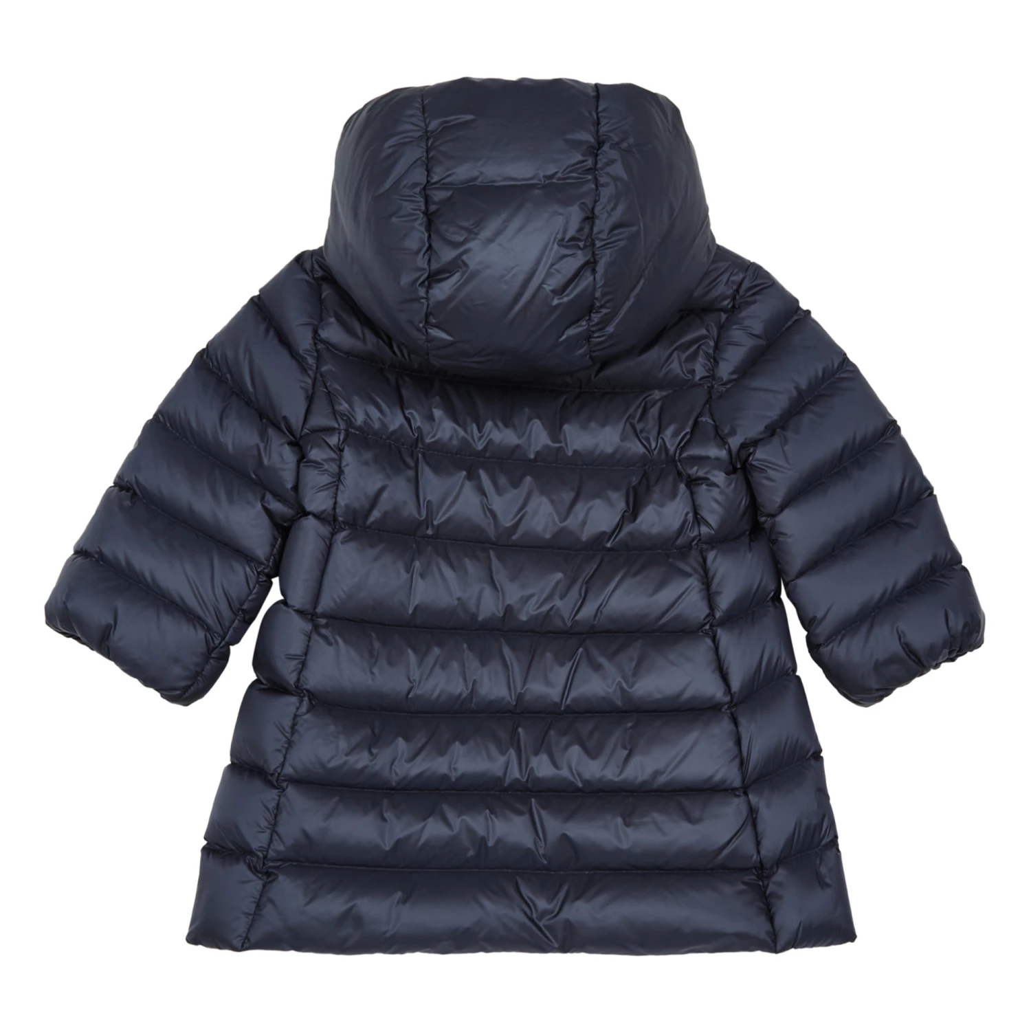 - Contrasting logo, Padded outside, Press stud pocket(s), Elastic cuffs, Removable hood, Warm and comfortable