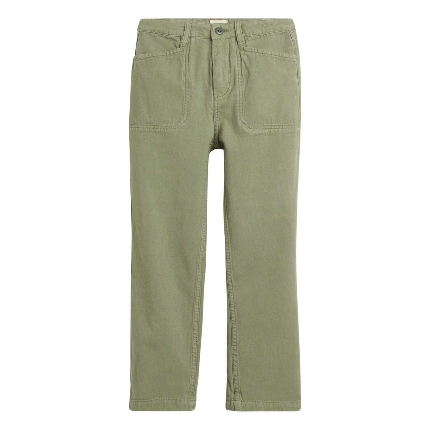 - Dart(s), Top stitched, Back patch pocket(s), Belt loops at waist, Side pockets, Sewn-in brand label