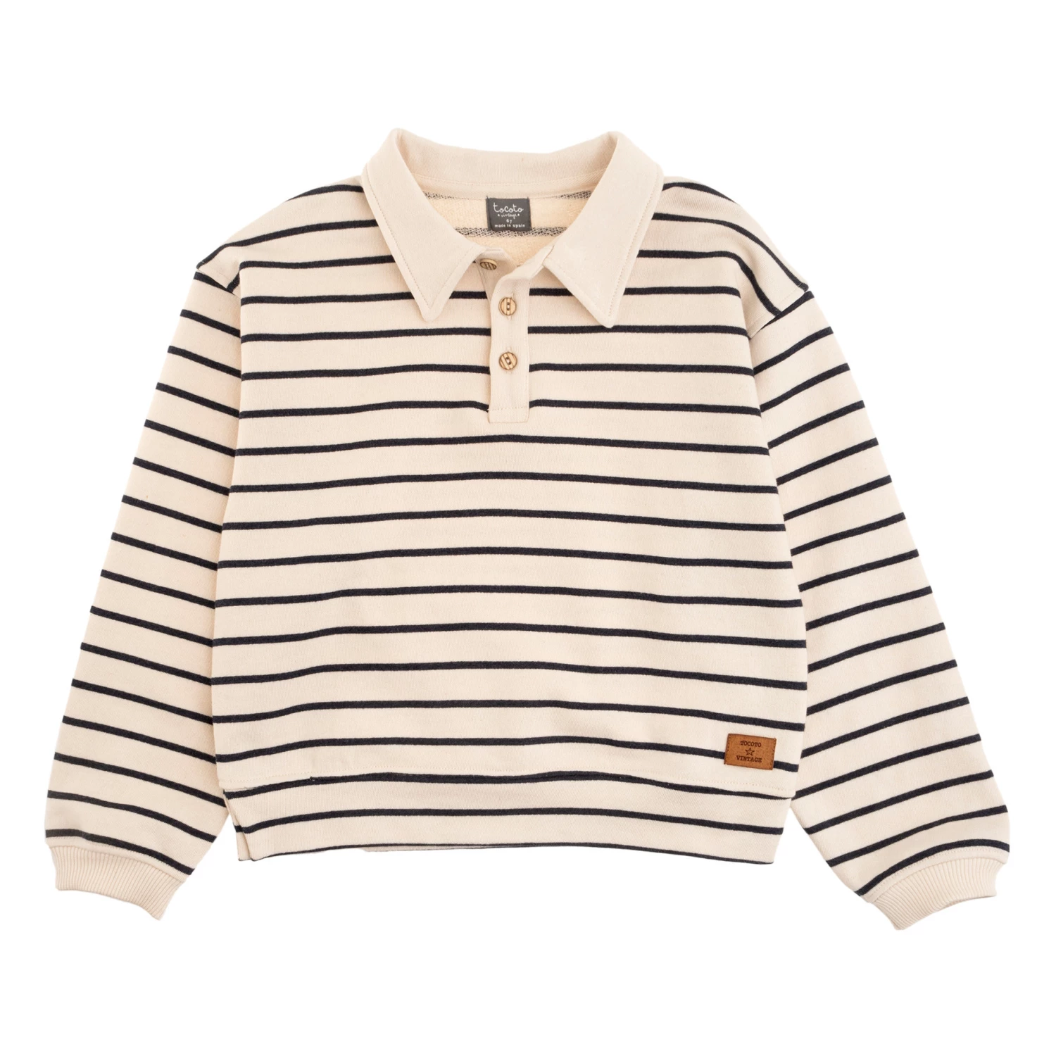 - Long sleeves, Ribbed cuffs, Contrasting edges, Sewn-in brand label, Wide sleeves, Polo collar