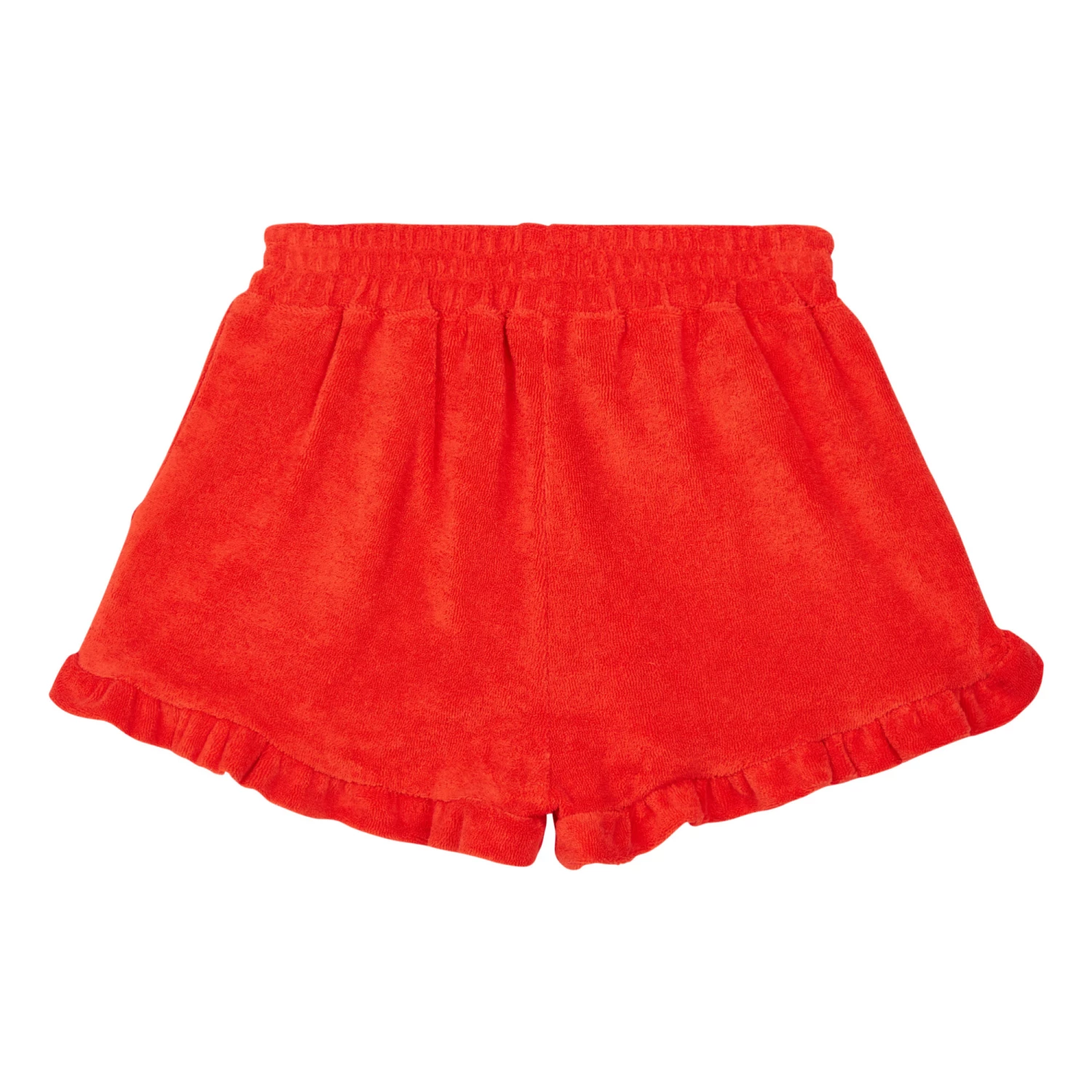 - Contrast stitching, Frilled edges, Side pockets, Elasticated waist