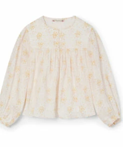 - Ruffle front, Gathered at the back, Gathered armholes, Crew neck, Lightweight, Long sleeves, Buttoned cuffs, Gathered cuffs, Wide sleeves