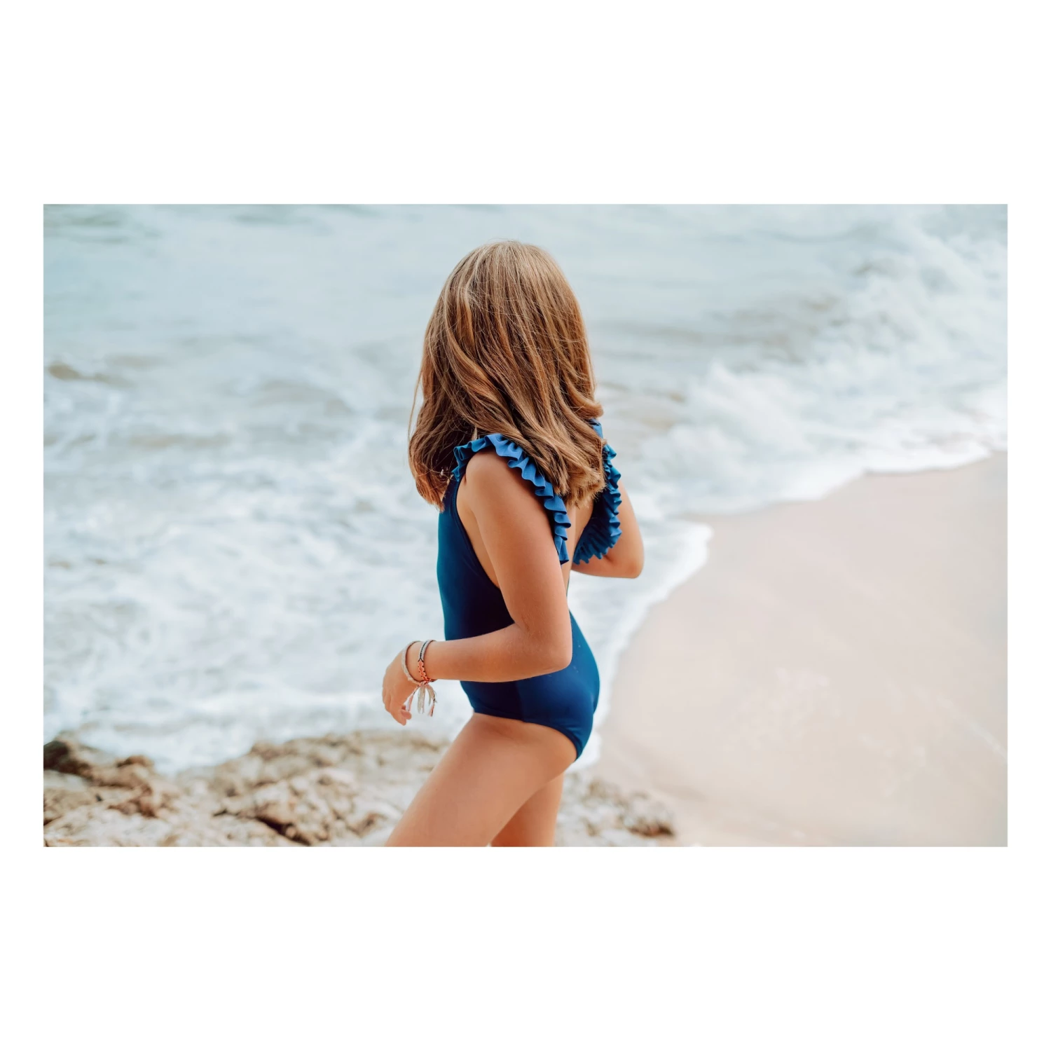 - Details : Round Neck, Frilled straps, Ruffled on the back, Holographic