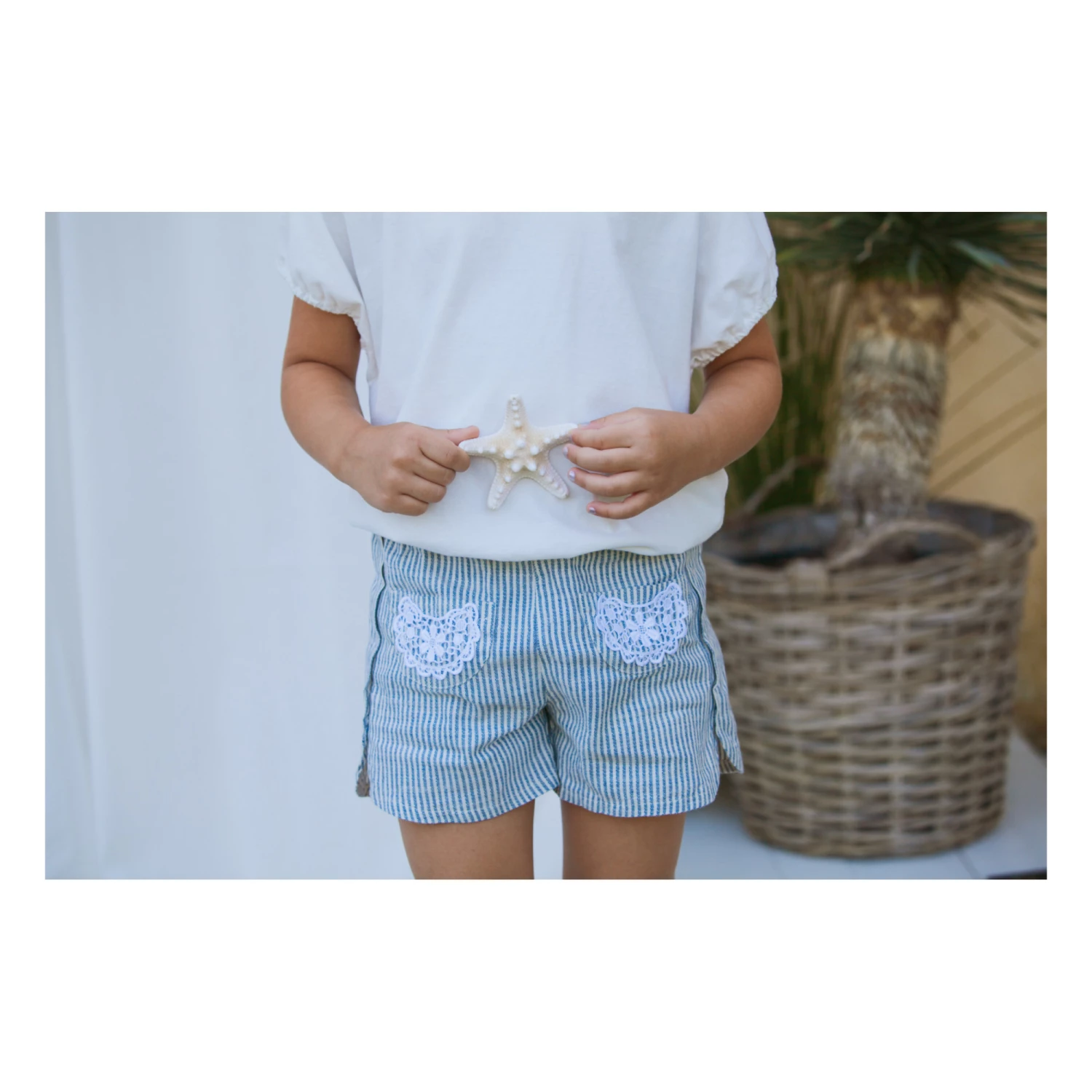 - Lace details, Rounded at the bottom, Slit side(s), Top stitched, Flowy, Front patch pocket(s), Elasticated waist, Embroidery
