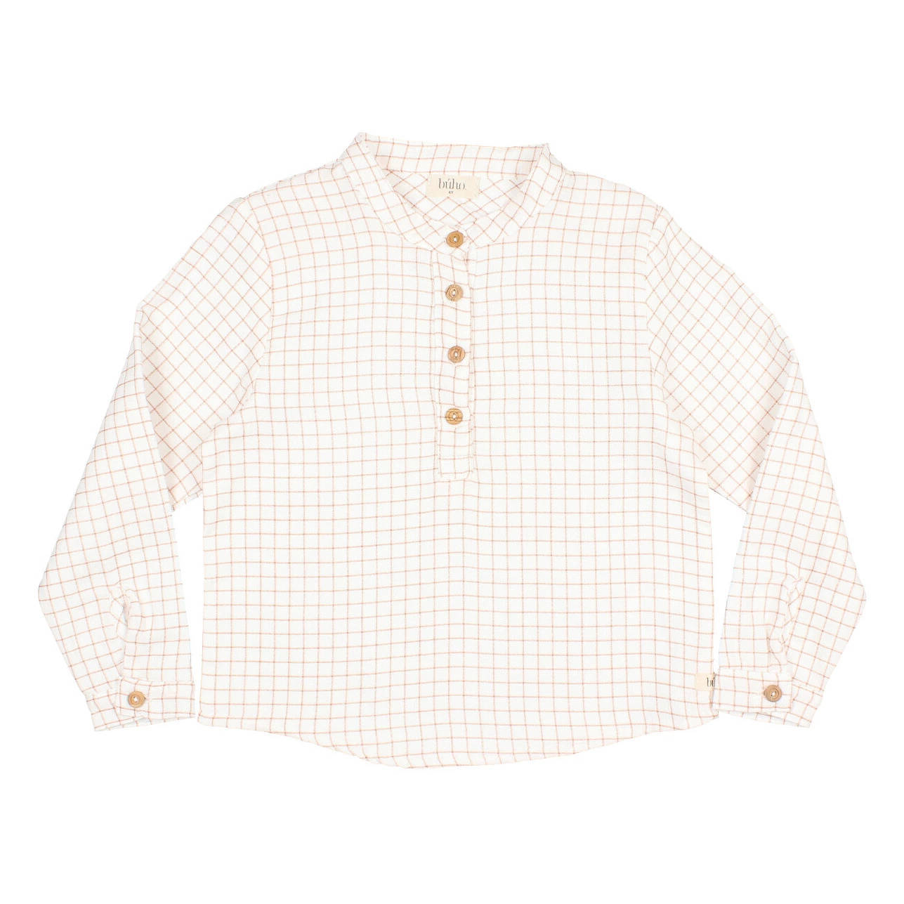 - Crew neck, Long sleeves, Buttoned cuffs, Top stitched edges, Sewn-in brand label, Mandarin collar