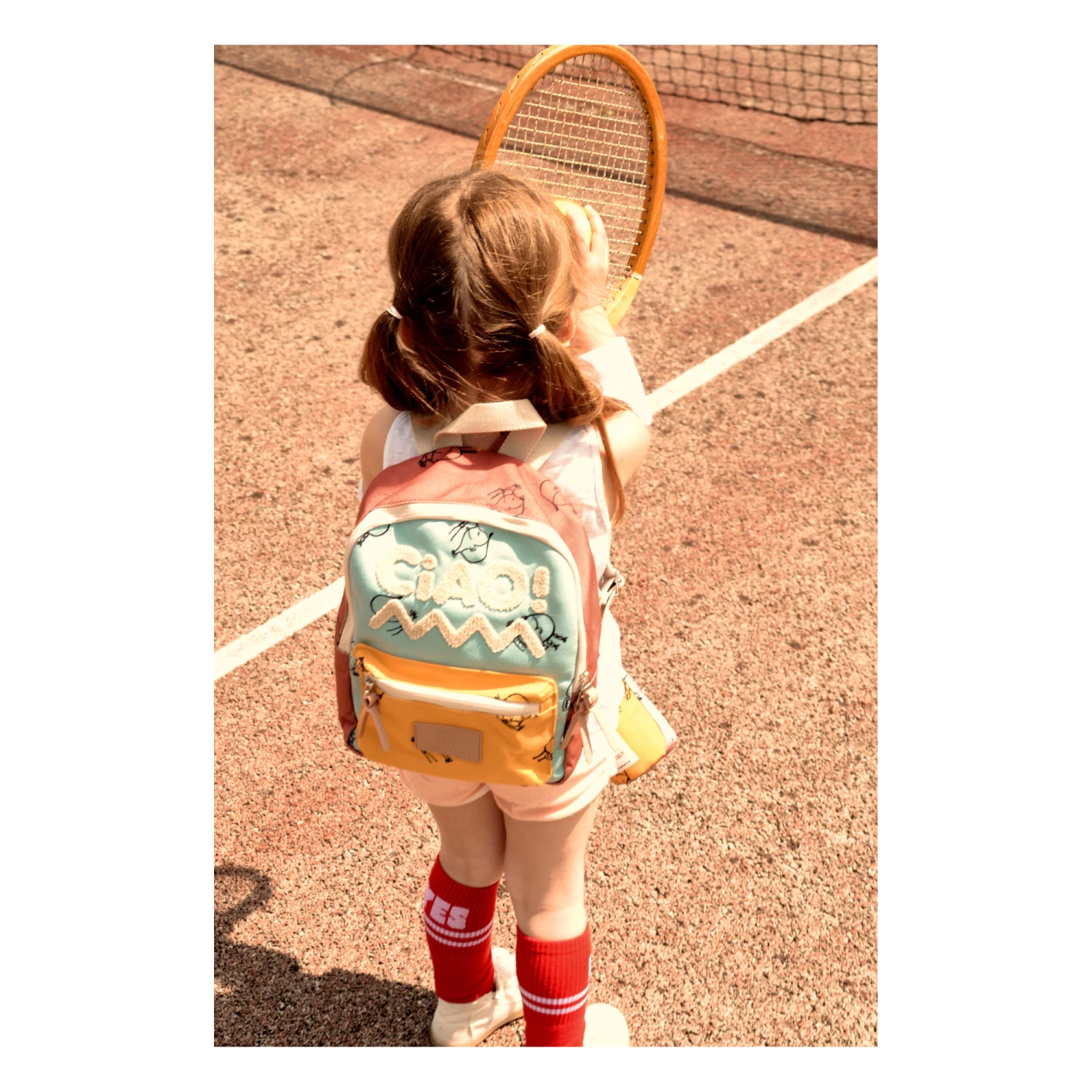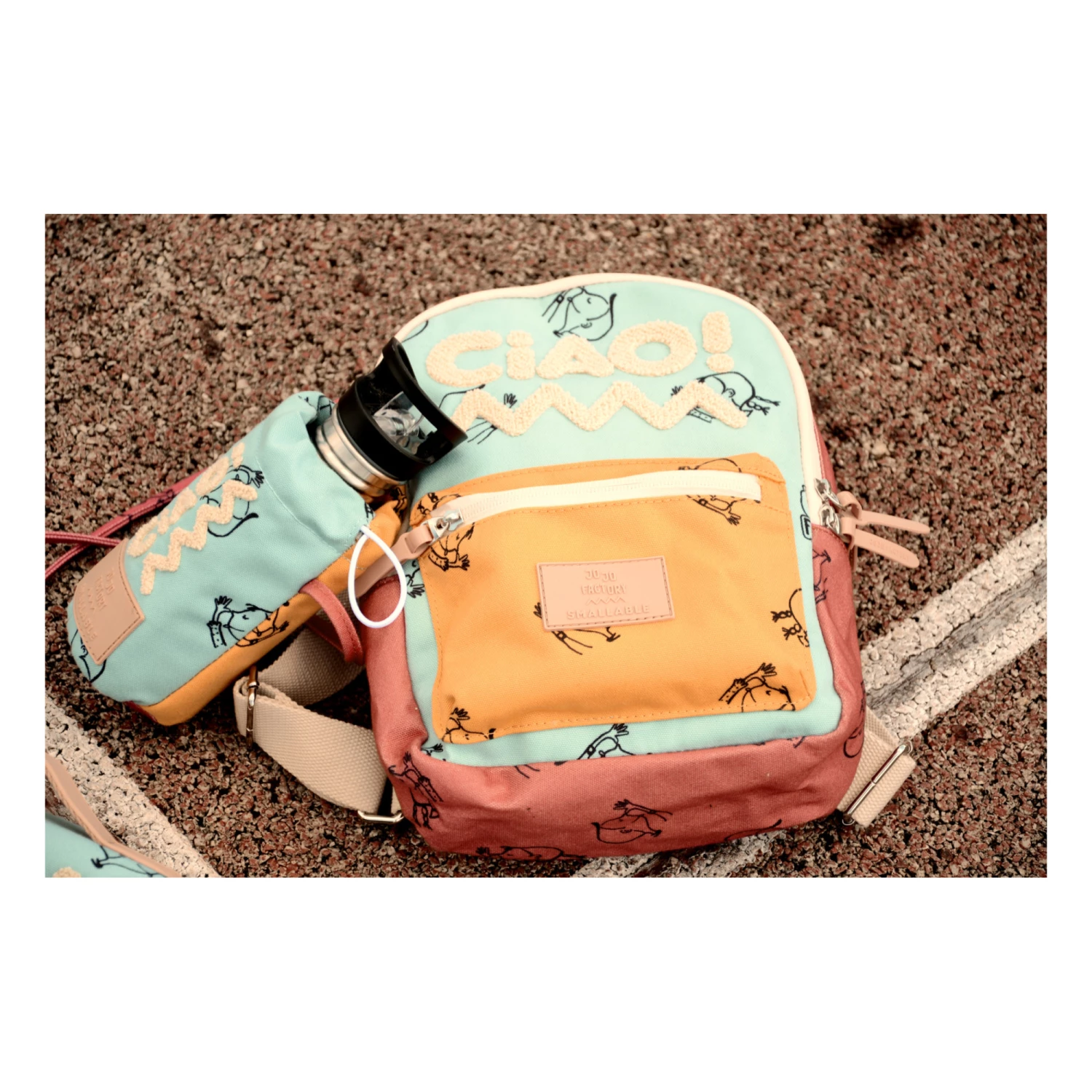 - Details : Fantasy print, Adjustable straps, 1 principal compartment, Front pocket with zip, Zip, Embossed, Tone-on-tone topstitchings, Fun tongue pocket with zip