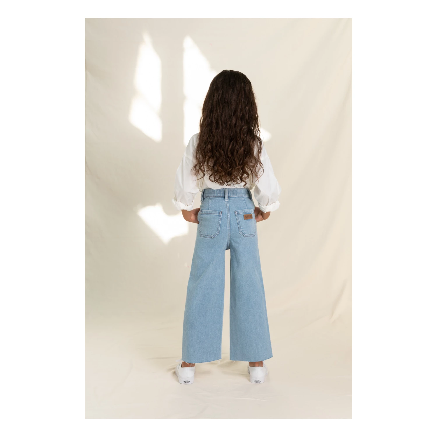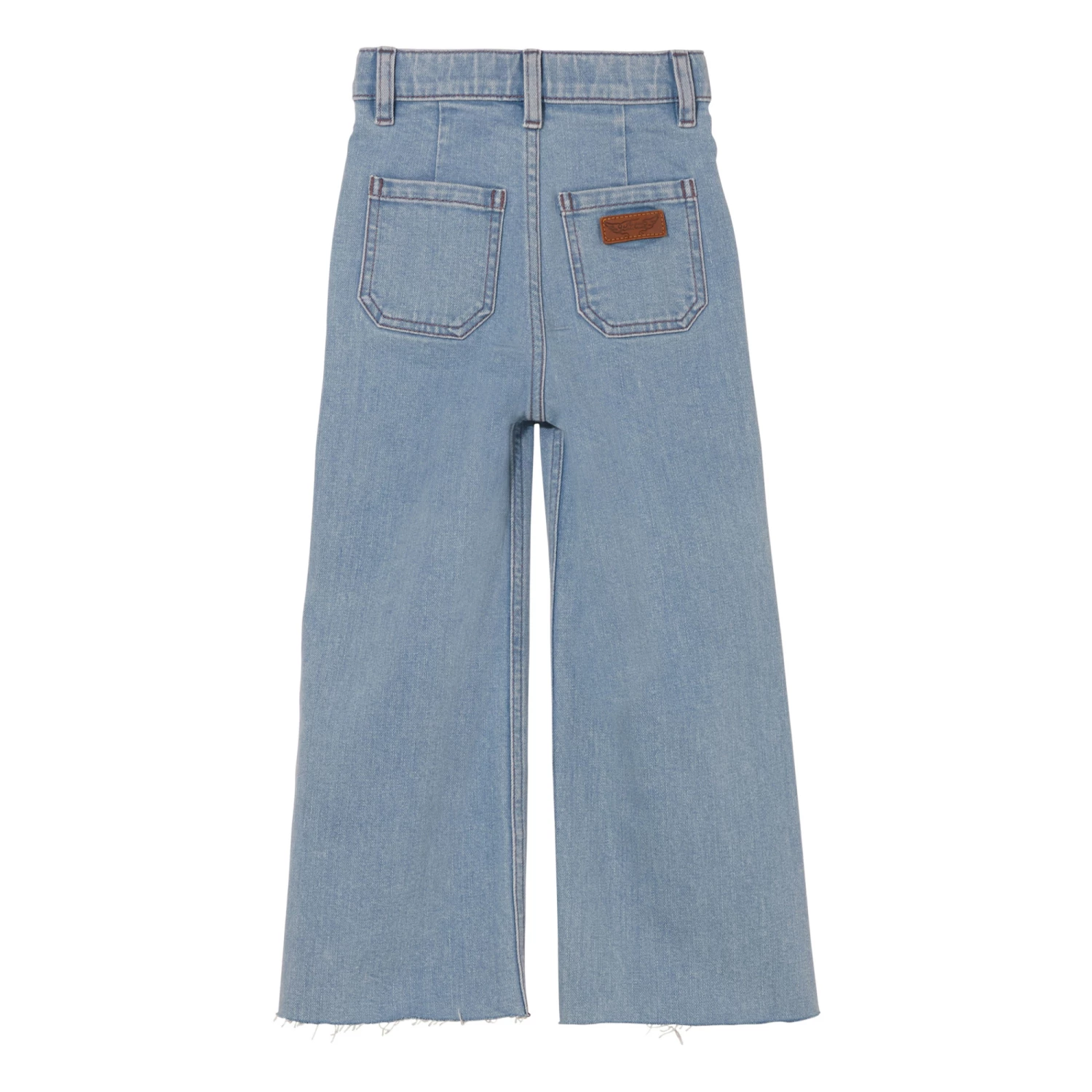 - Details : Flare Cut, Empire waistline, Belt loops, Side pockets, Back plated pockets, Zip, Waist button, Contrast topstitchings, Frayed