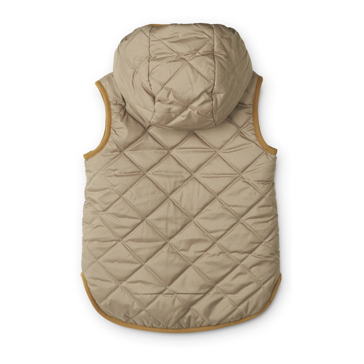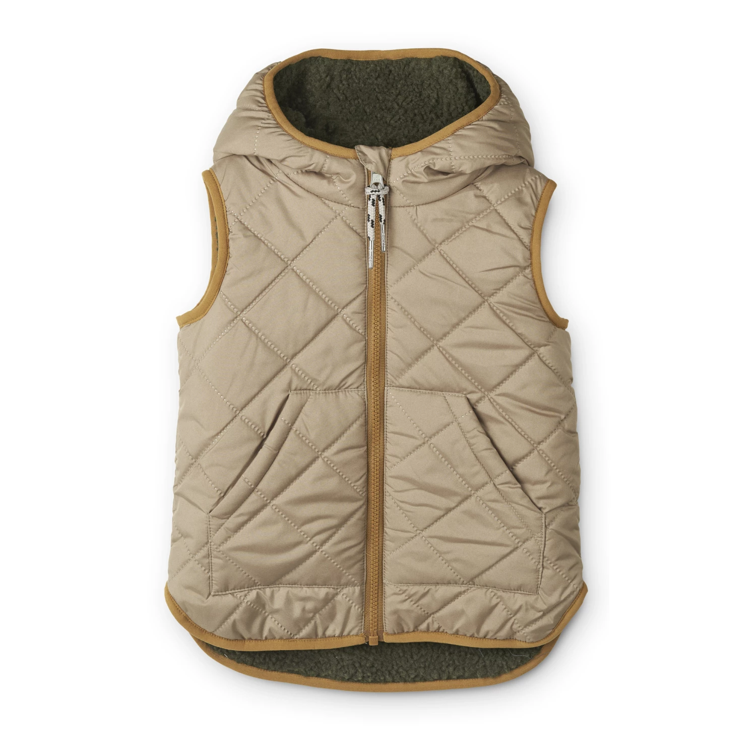 - Elasticised hood, Padded outside, Kangaroo pocket, Sleeveless, Sewn-in brand label, Tricolour, Hood, Comfortable