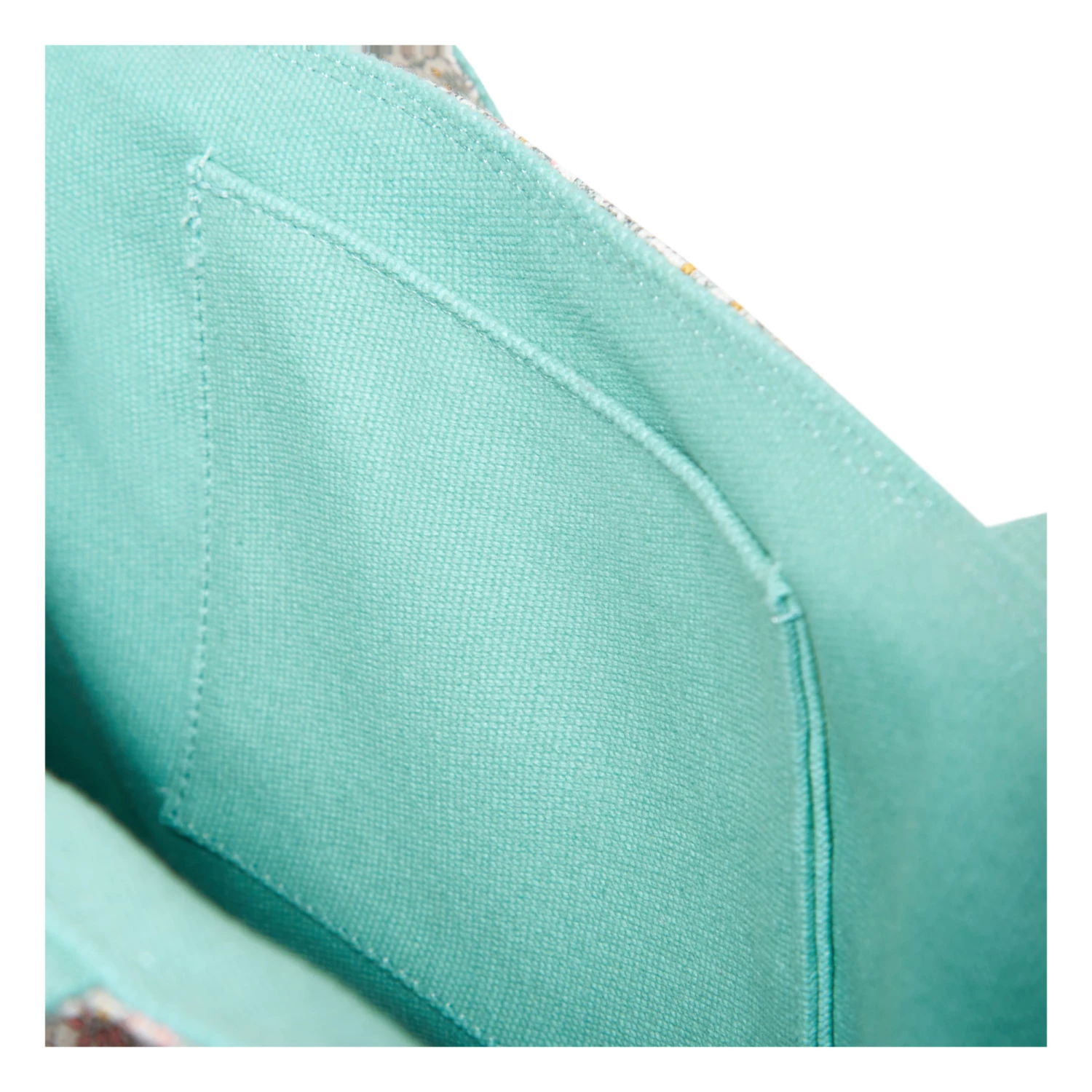 - Logo on front, Inside pocket(s), Top stitched edges, Sewn-in brand label, Main compartment, Handles